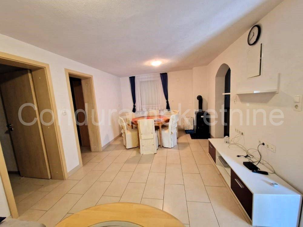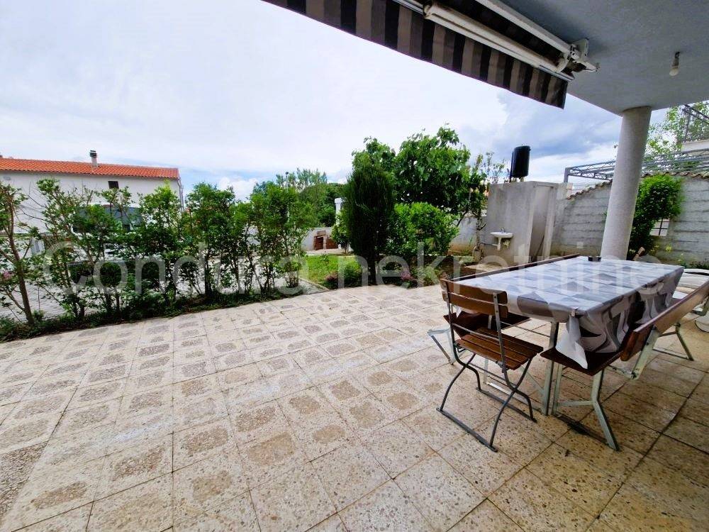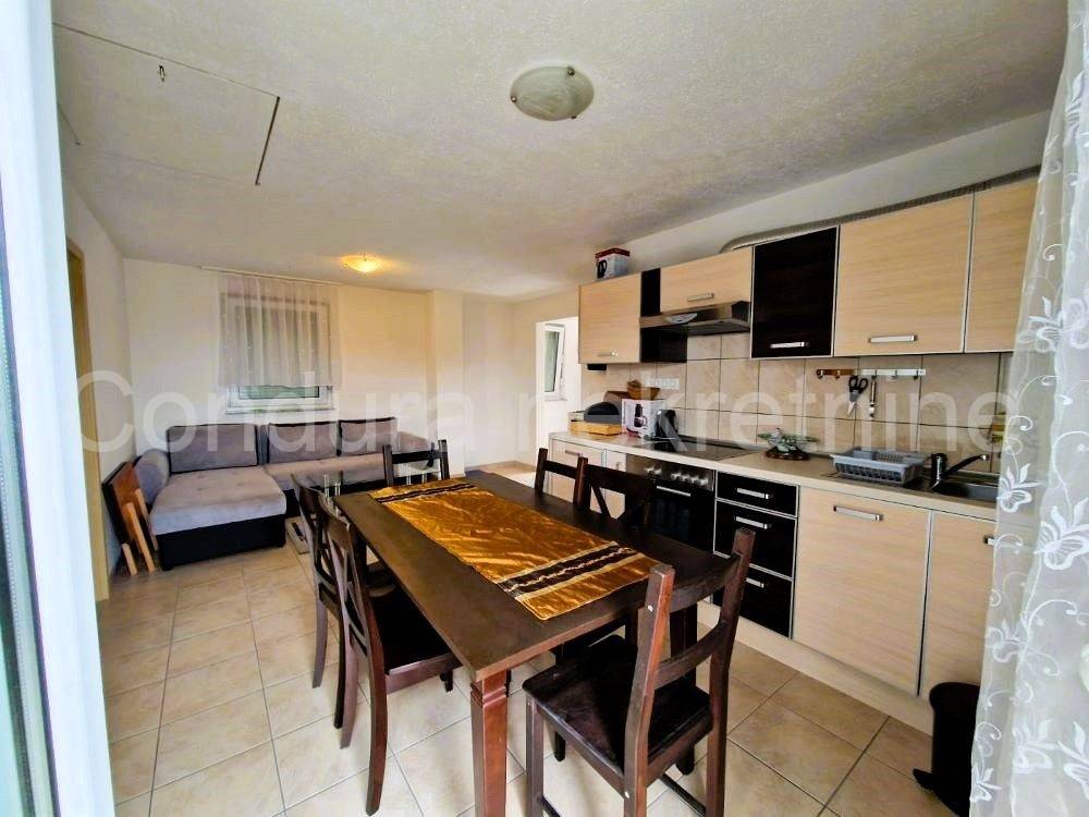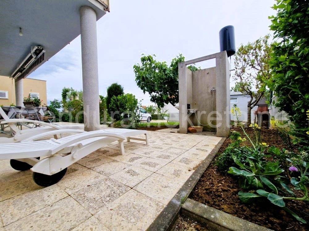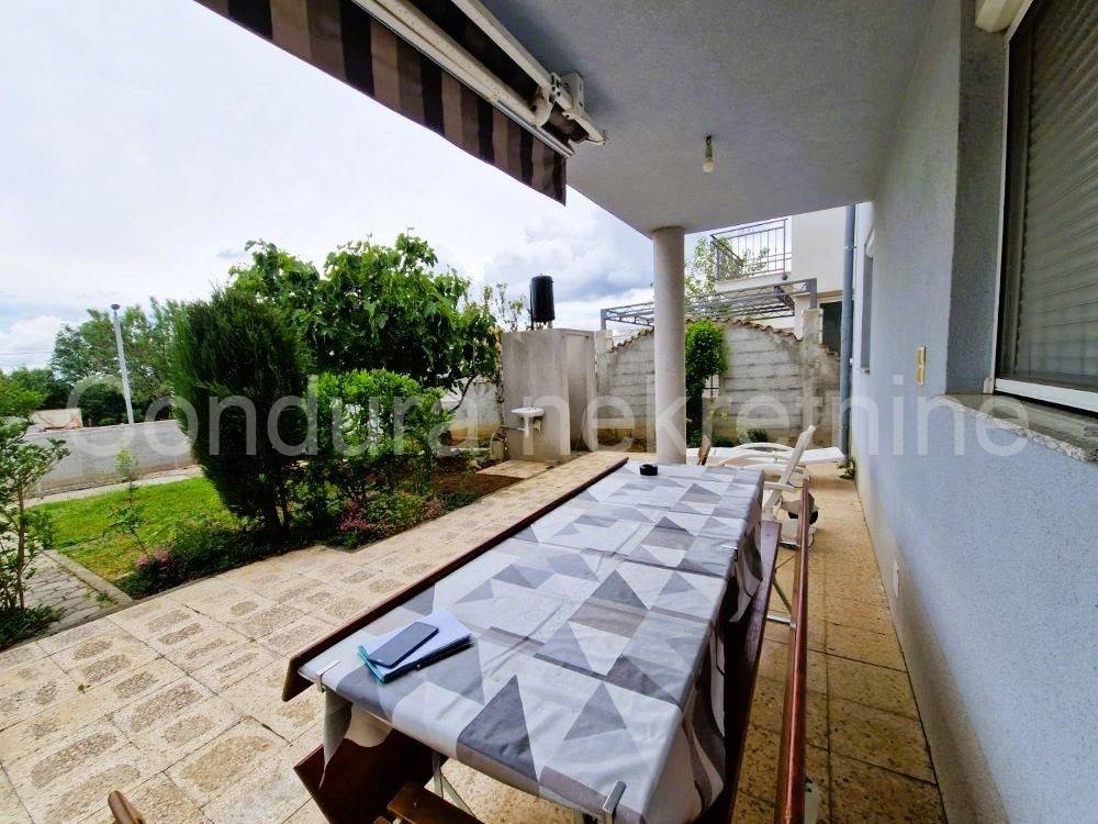 On the ground floor of the house there is an apartment with a living room and a dining room, kitchen, bathroom, storage room, two bedrooms and a large covered terrace.