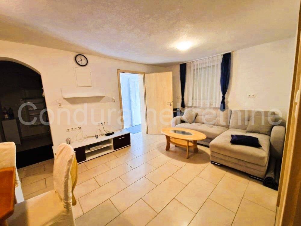 The first floor of the house is reached by a separate staircase. It consists of: living room with dining room and kitchen, bathroom, toilet, two bedrooms and a spacious terrace with a partial view of the sea.
