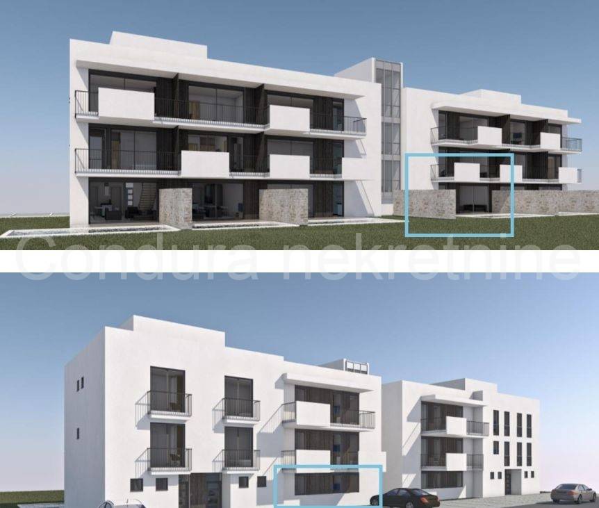 Privlaka - for sale is an apartment with a swimming pool on the ground floor in a newly built building, only 60 m from the sea and the first beach.