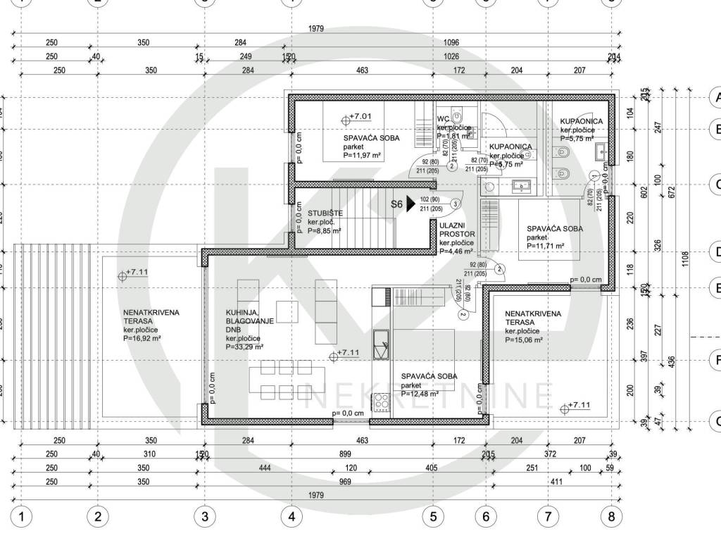 sami stan zatvorene površine iznosi 86,86 m2, te mu pripadaju terase, dva parkirna mjesta od koji je jedno natkrivenu a drugo vanjsko te spremišta u suterenu zgrade.
