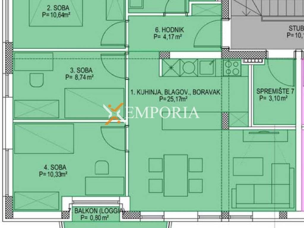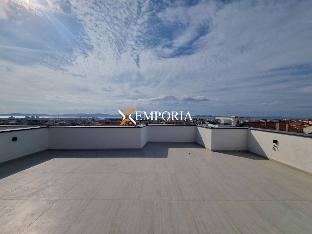Three-bedroom apartment for sale in Plovanija. It is a modern new building.This is an apartment on the 2nd floor. The layout of the rooms consists of a hallway, a bathroom, three bedrooms, a kitchen with a dining room and a living room, and a covered terrace. Internal stairs lead to the roof terrace of 75,91 m2. The net usable area of the described premises is 85,21 m2.In addition, the apartment has a storage room and two outdoor parking spaces.The total net area of the apartment with all additional parts is 94,33 m2.The distance of this property from the sea is 1.9 km. The distance from the center is 2.3 km.The advantage of buying these apartments is that the buyer does not pay real estate transfer tax.