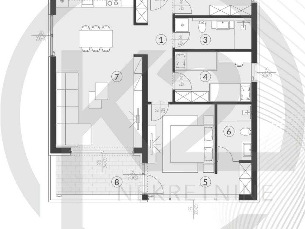 Projekat se sastoji od dvosobnih (1S+DB), trosobnih (2S+DB) i četverosobnih (3S+DB) stanova, pri čemu svaki stan ima pripadajuće parkirno mjesto. Uz dvosoban stan pripadajuće jedno parkirno mjesto, uz trosoban također jedno parkirno mjesto dok u četverosoban stan pripadaju dva parkirna mjesta.