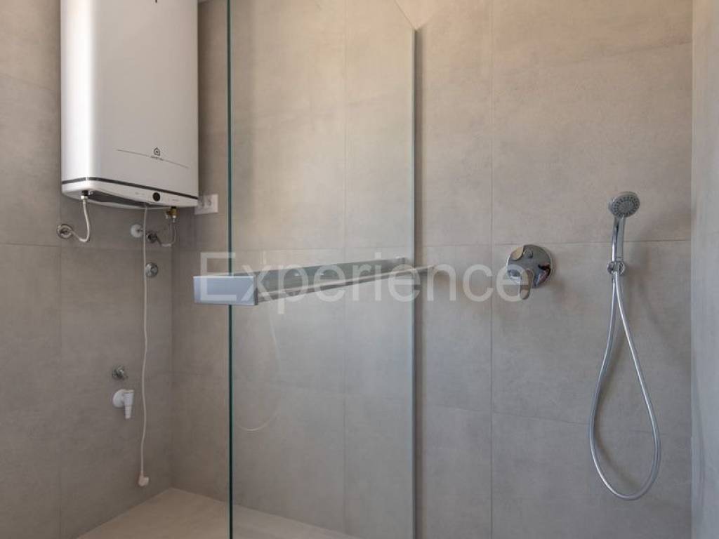 The apartments interior extends over two floors. On the lower floor there is an open and bright space with a living room, dining room and kitchen with access to the loggia, bedroom and bathroom. While on the upper floor are situated two bedrooms and a toilet. From the loggia, there is an open view of the sea.
