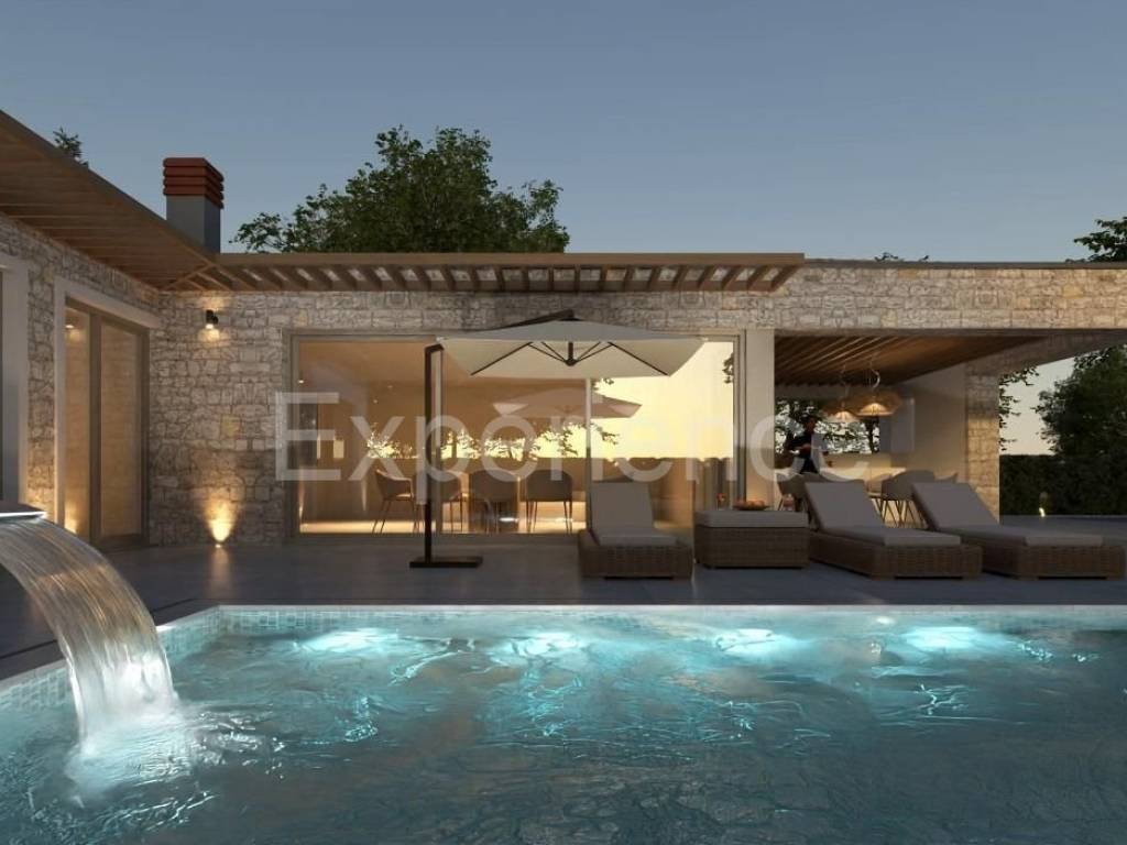 In the vicinity of Poreč, approx. 16 km from the sea and the city center, a newly built villa is for sale, with a total area of 156 m. The villa blends the spirit of Istrian tradition with the timeless elegance of contemporary architecture.