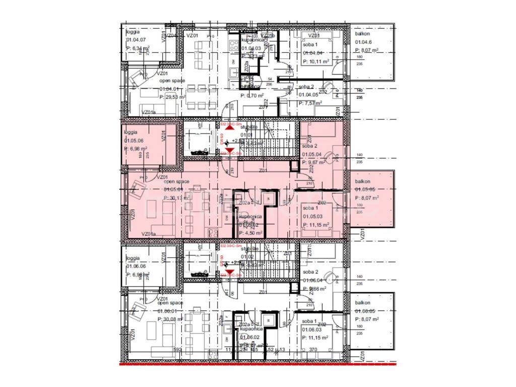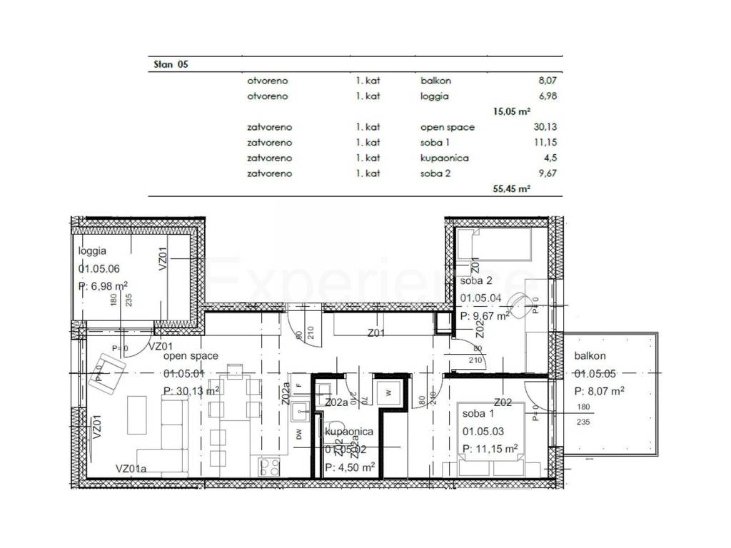 In Tar - approx. 2.500 m from the sea, in a very quiet environment an apartment with a surface of 62,70 m is for sale. The apartment is situated on the first floor of a residential building. Contains: an open and bright space in which are situated a living room, kitchen and dining room with access to the balcony (6.98 m), two bedrooms one of which has access to the balcony (8.07 m) and a bathroom.