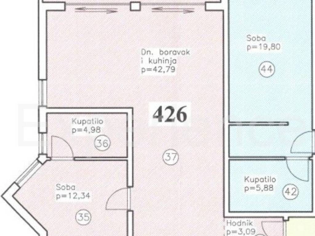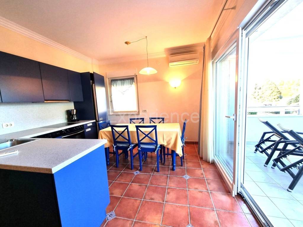 Crveni vrh, in an exclusive location, just 130 m from the beach is a comfortable apartment for sale, with the total area of 116.56 m. The apartment is situated within the resort in a position that offers a beautiful view of the sea. The building was built in 2005. and regularly maintained. The apartment is situated on the ground floor of the building. It includes: entrance hall, an open and bright space where are situated a living room, kitchen and dining room with access to a spacious covered terrace (21.27 m), two bedrooms each with its own bathroom, and toilet. The apartment also has a storage room (4.80 m) in the basement of the building.