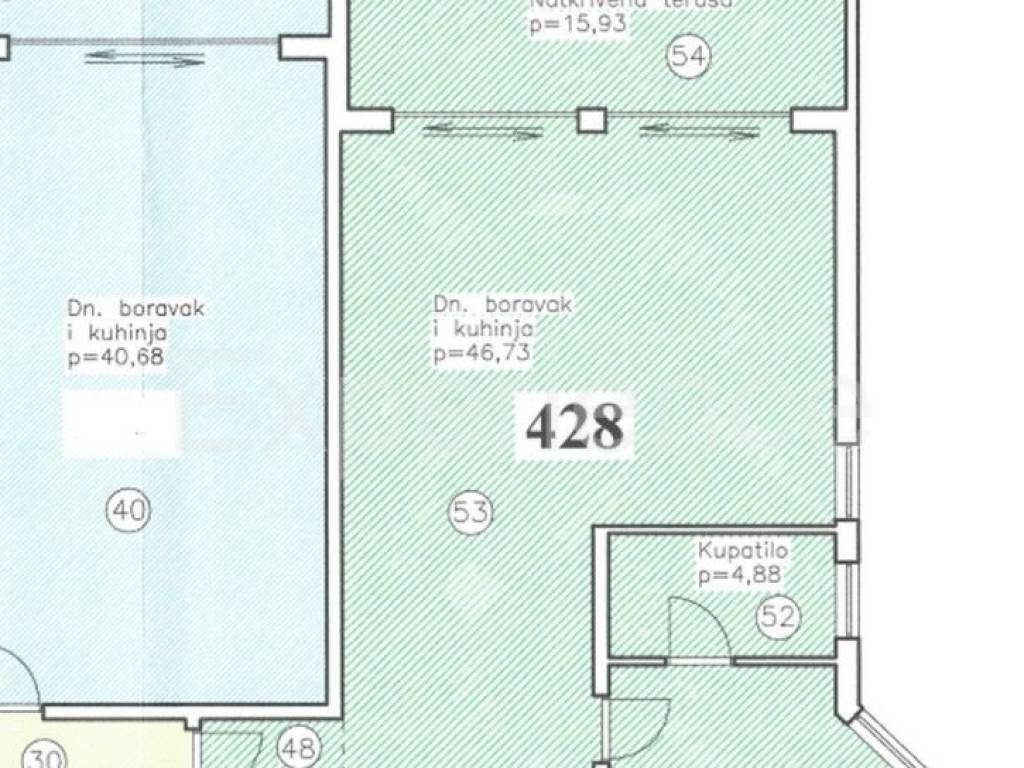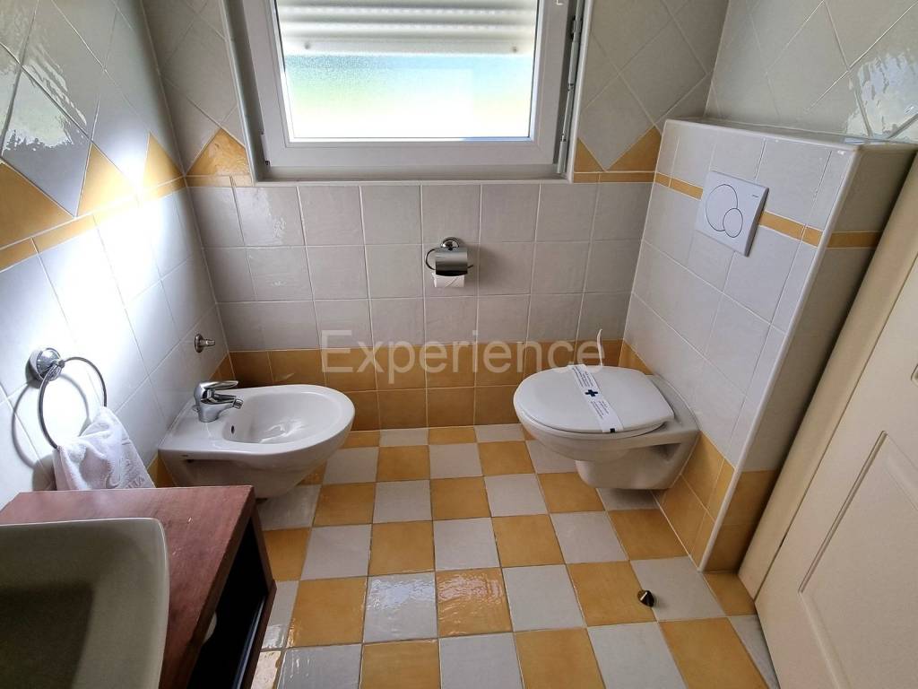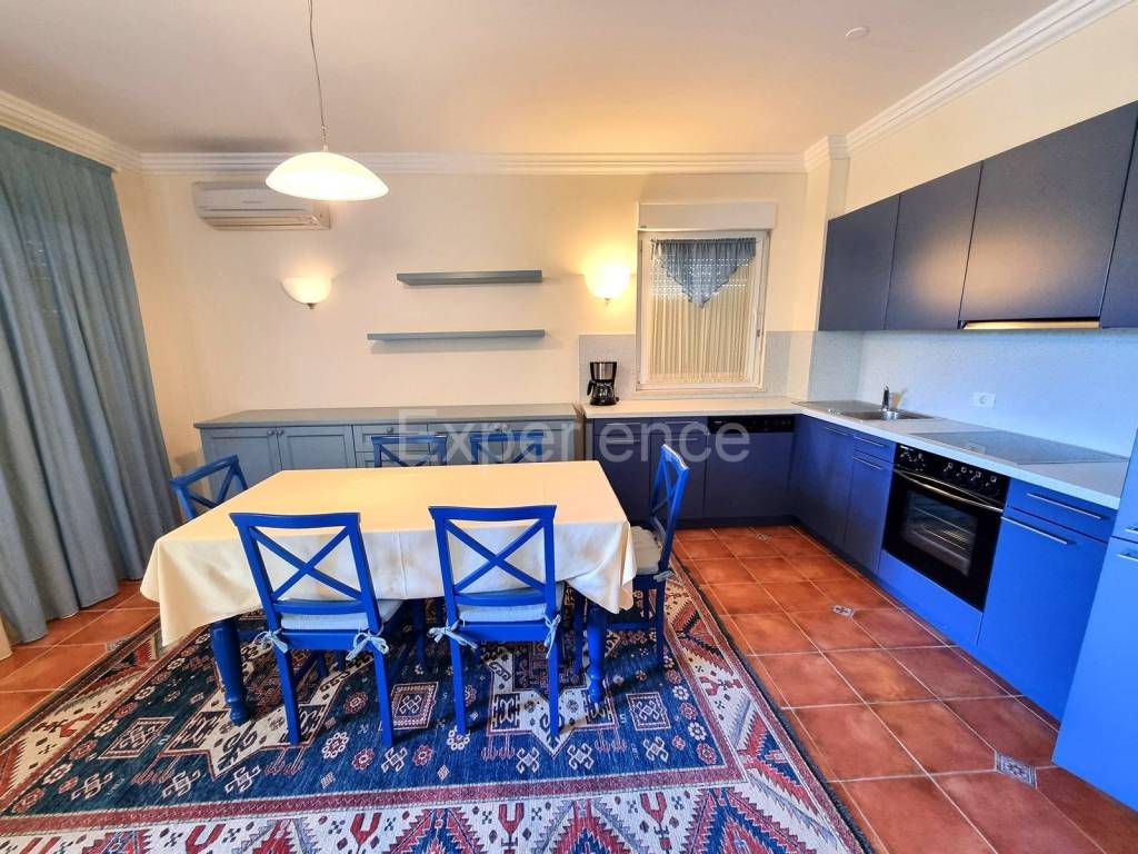 Crveni vrh, in an exclusive location, just 130 m from the beach is a comfortable apartment for sale, with the total area of 120.65 m. The apartment is situated within the resort in a position that offers a beautiful view of the sea. The building was built in 2005. and regularly maintained. The apartment is situated on the ground floor of the building. It includes: entrance hall, an open and bright space where are situated a living room, kitchen and dining room with access to a spacious covered terrace (20.89 m), two bedrooms each with its own bathroom. The apartment also has a storage room (7.23 m) in the basement of the building.