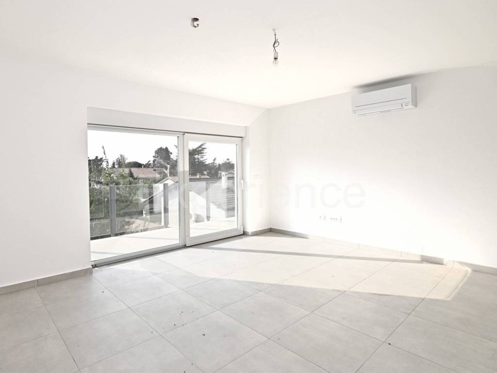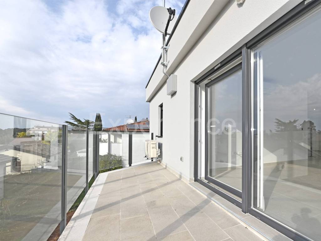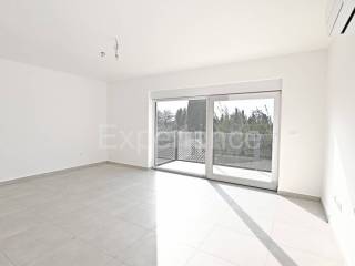 Savudrija - approx. 500 m from the beach, in a very quiet environment there is a three-room apartment for sale in a new building, surface of 67,31 m. The apartment is situated on the first floor of a residential building with a total of 8 residential units. Contains: entrance hall, an open and bright space where are situated a living room, kitchen and dining room with access to a spacious balcony (9.82 m), two bedrooms and a bathroom. The apartment also has a garage (15,30 m) and storage room (7,90 m) in the basement of the building.