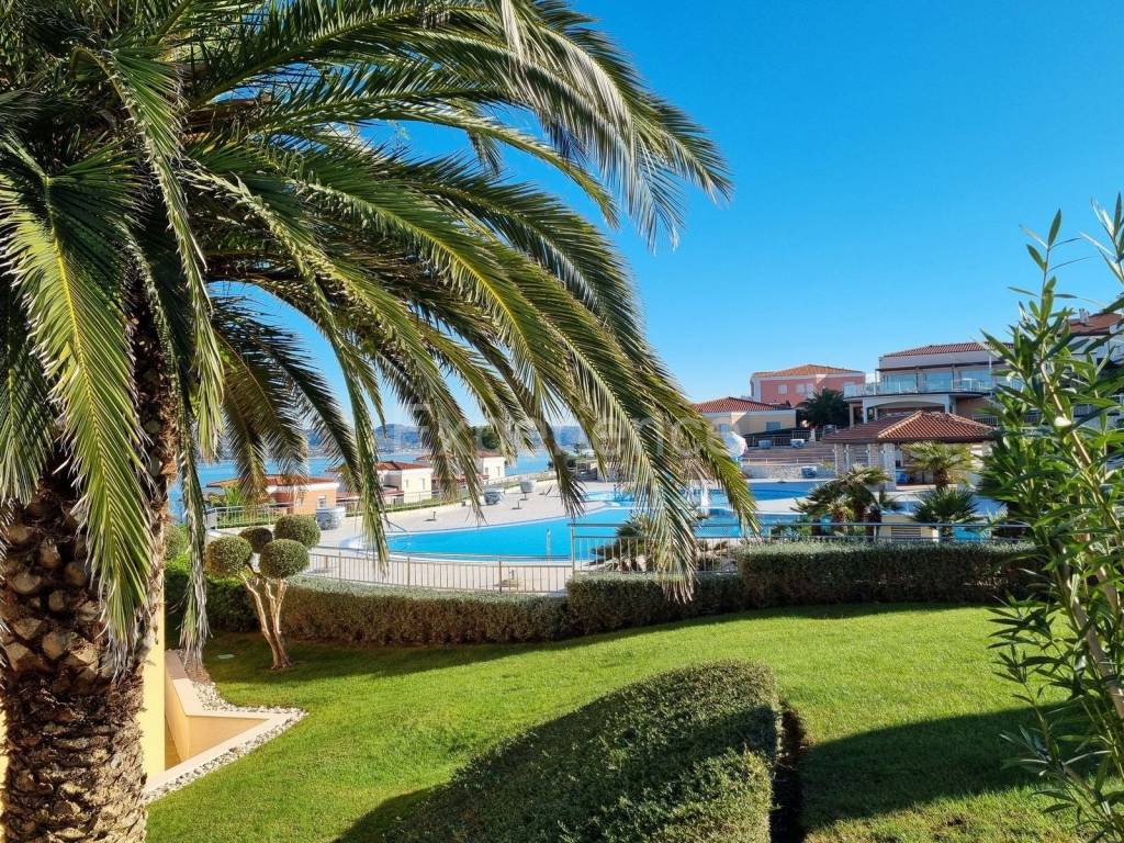 Crveni vrh, in an exclusive location, just 130 m from the beach is a comfortable apartment for sale, with the total area of 115.97 m. The apartment is situated within the resort in a position that offers a beautiful view of the sea. The building was built in 2005. and regularly maintained. The apartment is situated on the ground floor of the building. It includes: entrance hall, an open and bright space where are situated a living room, kitchen and dining room with access to a spacious covered terrace (25.06 m) with sea view, two bedrooms each with its own bathroom. The apartment also has a storage room (5.15 m) in the basement of the building.