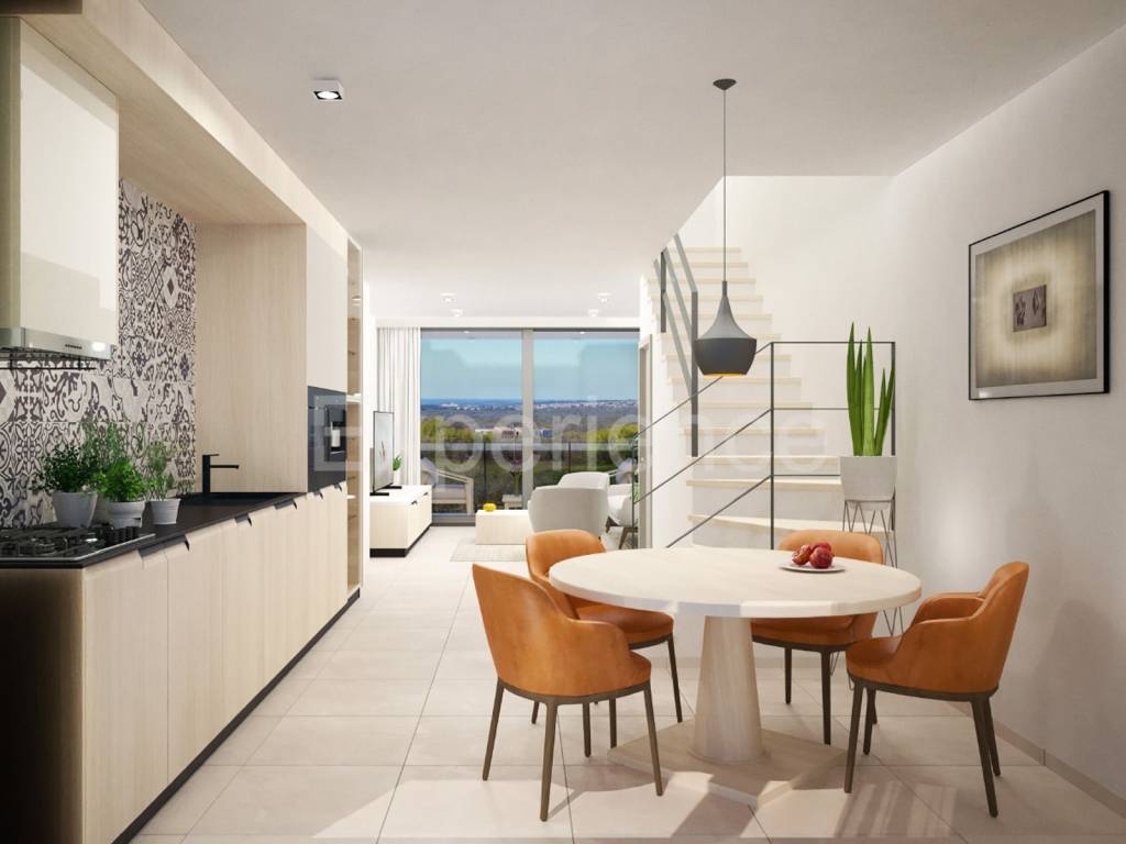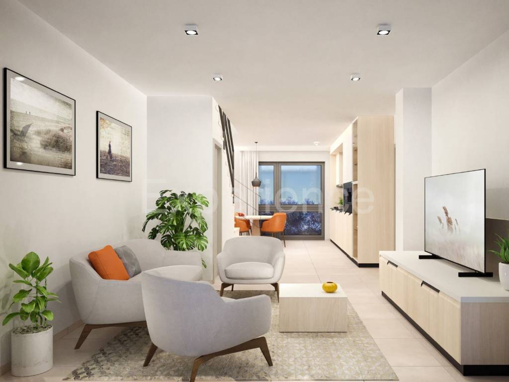 For sale is a two-story apartment situated on the first floor of a residential building, which covers an area of 72,20 m. The interior of the apartment comprises two floors. On the lower floor there is an open and bright space where are situated a living room, kitchen and dining room with access to the loggia and a toilet. While on the upper floor are situated two bedrooms and bathroom. The loggia offers an open view of the sea. The apartment also has a storage room on the ground floor of the building (7.70 m) and covered parking space.