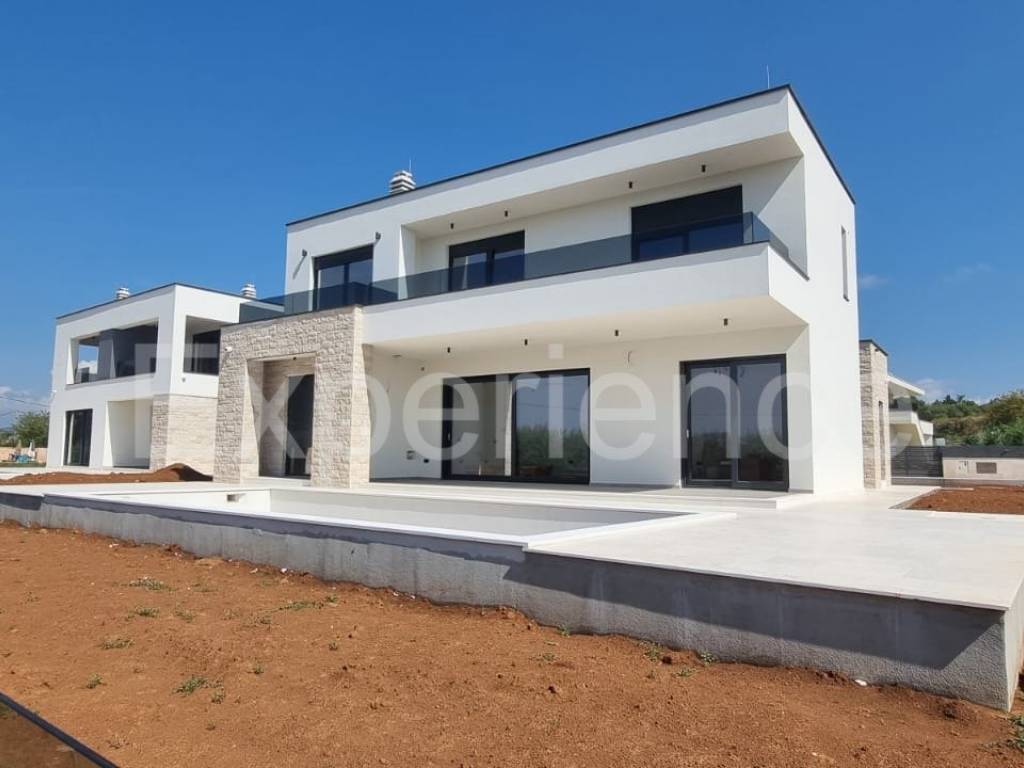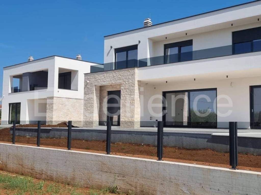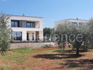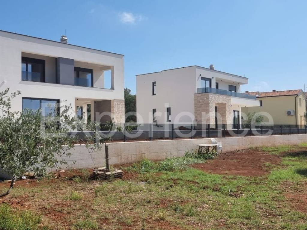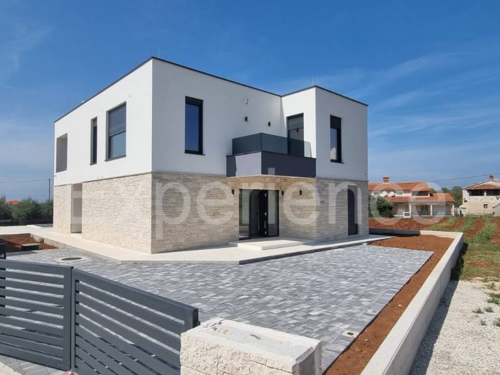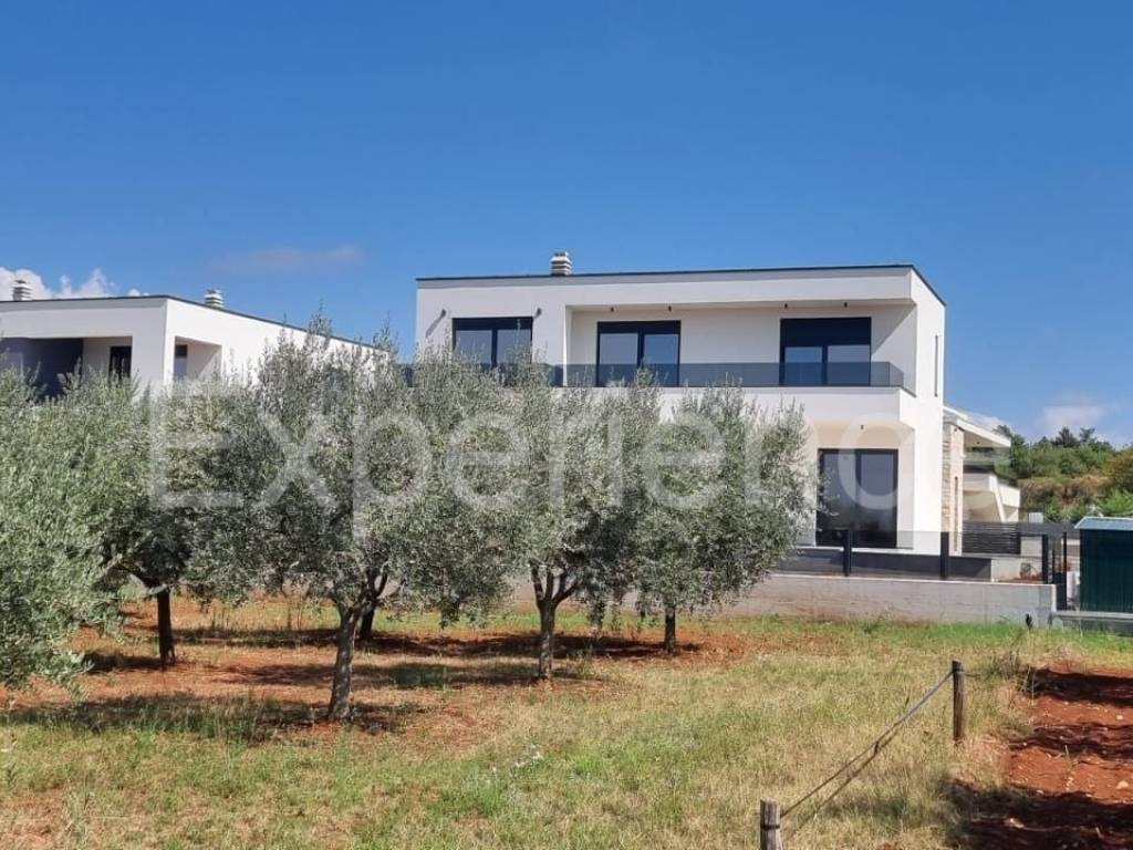 In the vicinity of Poreč, approx. 4 km from the sea and the center of the city, in a very quiet environment a luxurious newly built villa is for sale, with a total area of 216 m. The villa is characterized by an attractive modern design with wide glass openings with a view of the olive grove, and from the first floor of the villa there is an open view of the sea.