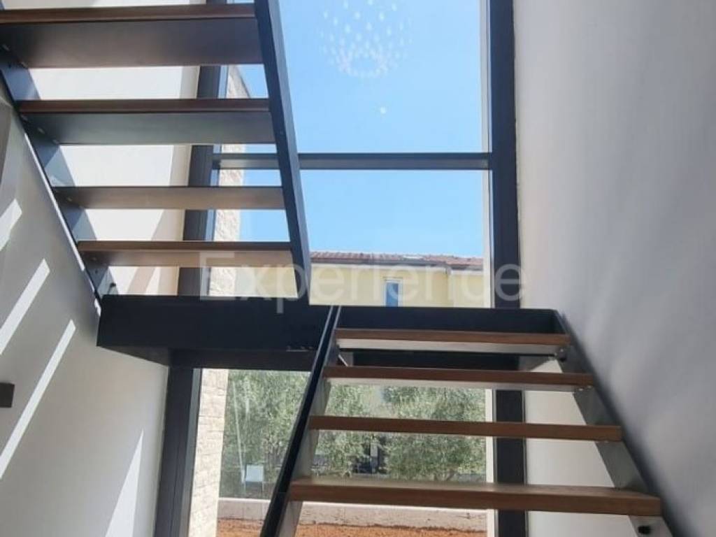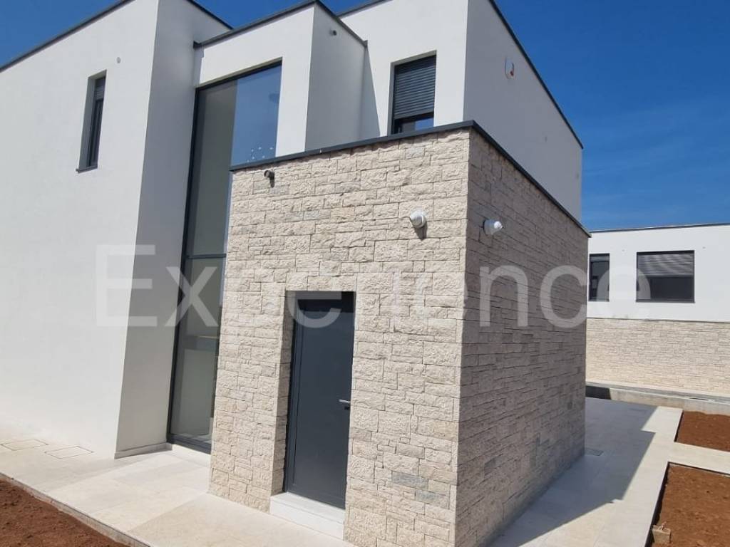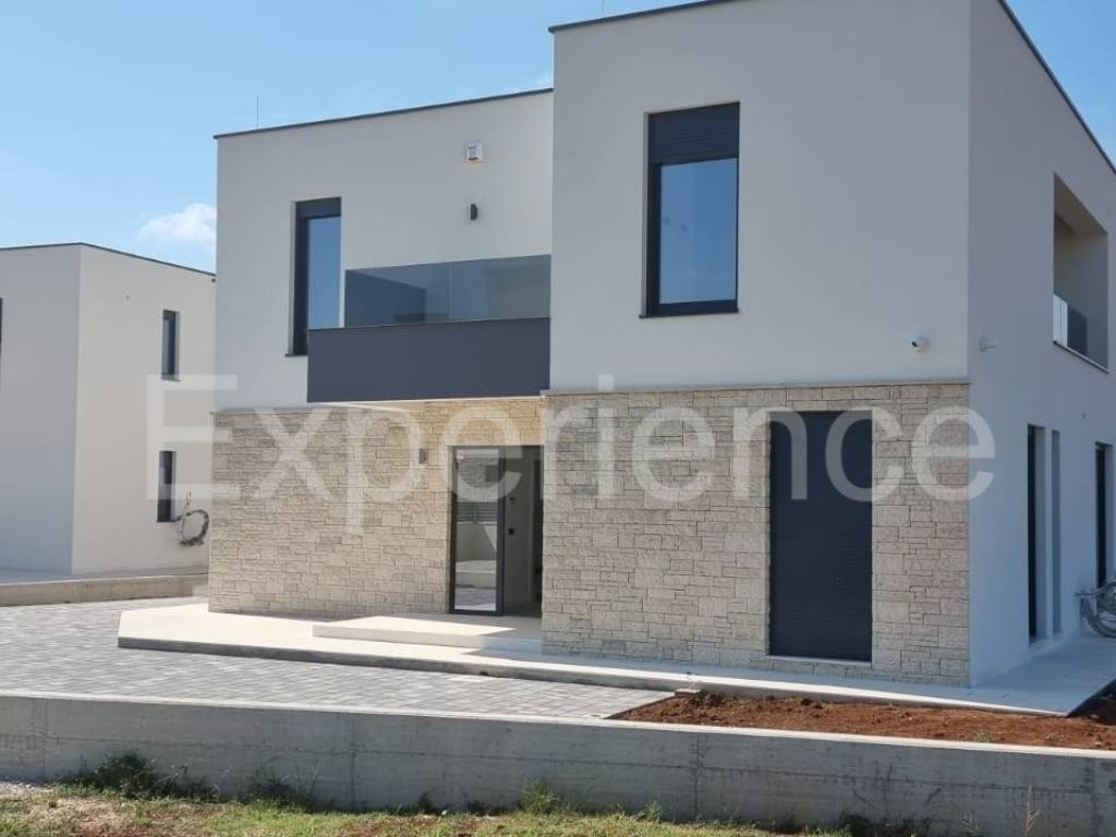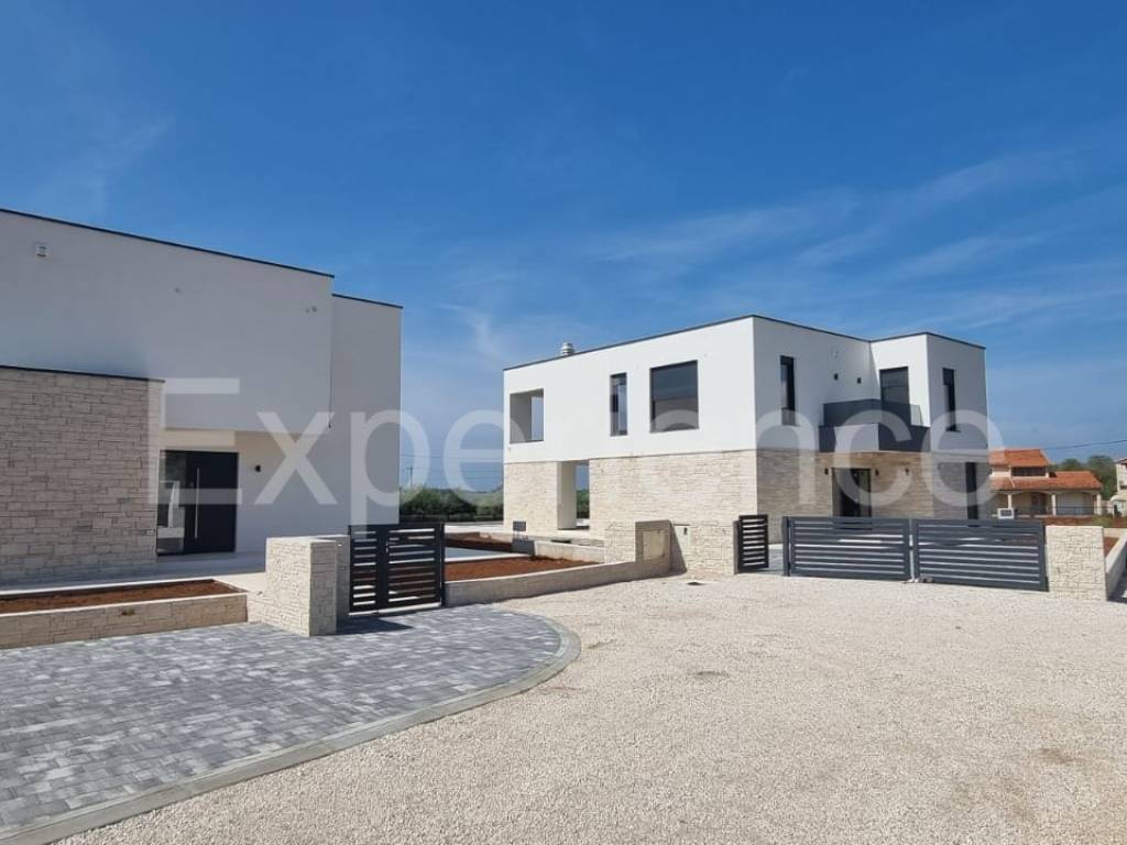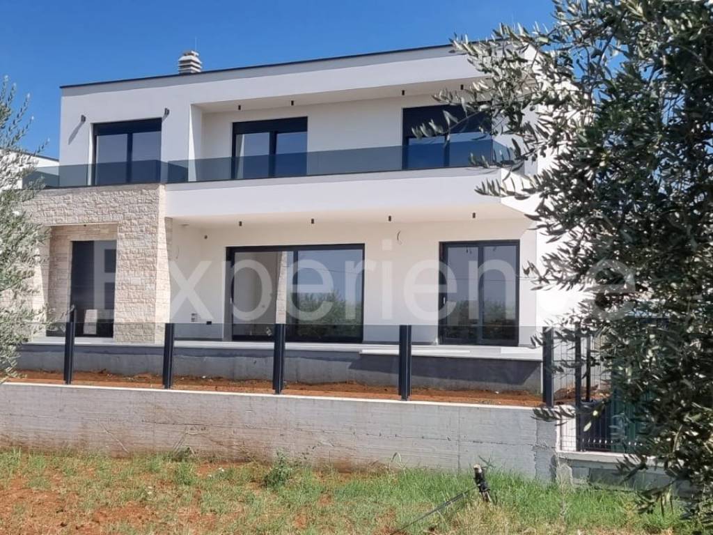 In the vicinity of Poreč, approx. 4 km from the sea and the center of the city, in a very quiet environment a luxurious newly built villa is for sale, with a total area of 216 m. The villa is characterized by an attractive modern design with wide glass openings with a view of the olive grove, and from the first floor of the villa there is an open view of the sea.