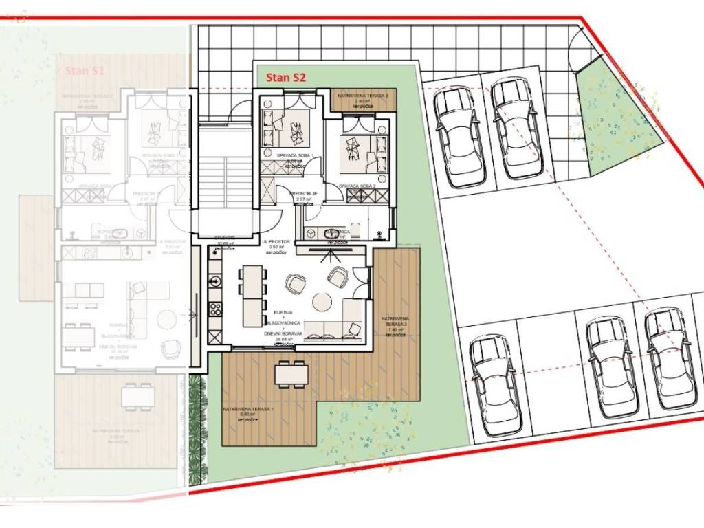 Vanjsko parkirno mjesto: 10.000 € (nije uključeno u cijenu stana).
