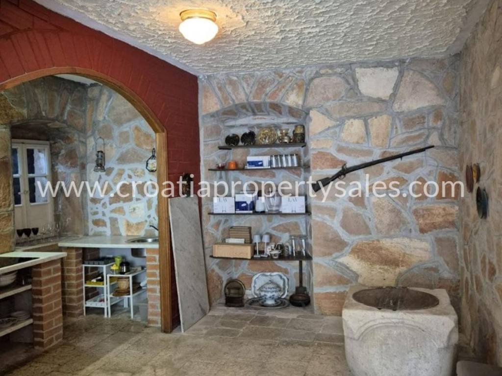 Excellent business opportunity.Semi-detached stone house with an established restaurant in the center of a popular tourist destination.The house is in the first row to the sea. It consists of three floors.On the ground floor there is a restaurant, an established restaurant, fully equipped, ready for a new owner.On the first floor there is a large dining room, kitchen and bathroom. On the second floor there are 4 bedrooms, a bathroom, a living room with access to a terrace with a beautiful view of the town and the sea.This property represents an exceptional opportunity for anyone who wants to start their own business and enjoy the comfort of family life, while at the same time being close to all the necessary amenities in the center of the town.