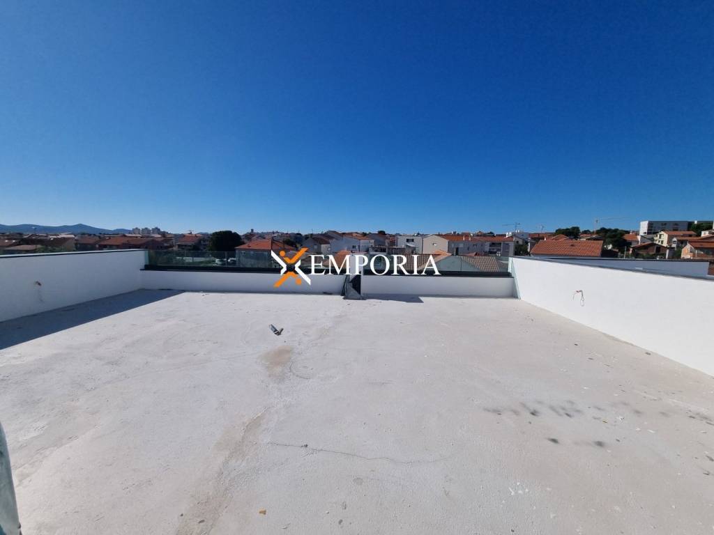 A new apartment is for sale in Zadar, located in the Crvene kuće area. The apartment is situated on the second floor of a modern residential building, which is expected to be ready for occupancy by the beginning of 2026. The building has a lift. Nearby, there will be a park with trees, walking paths, and a children"s playground.The layout of the apartment includes an entrance hall, two bedrooms, a bedroom with a bathroom, a bathroom, a toilet, a kitchen with a dining area and living room, and a loggia (105,50 m2 net). From the staircase, there is access to a roof terrace with an area of 120,18 m2. The net usable area of the described rooms is 135,54 m2.Additionally, the apartment comes with three outdoor parking spaces. The total net area, including the parking, is 143,79 m2.The property is located 1,3 km from the sea and 2,7 km from the city center.