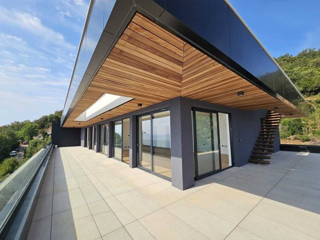 Ekskluzivni stan u urbanoj vili od tri etaže, s pogledom na more, sa devet stanova i pet bazena, u Opatiji, udaljeno od mora 250 m.