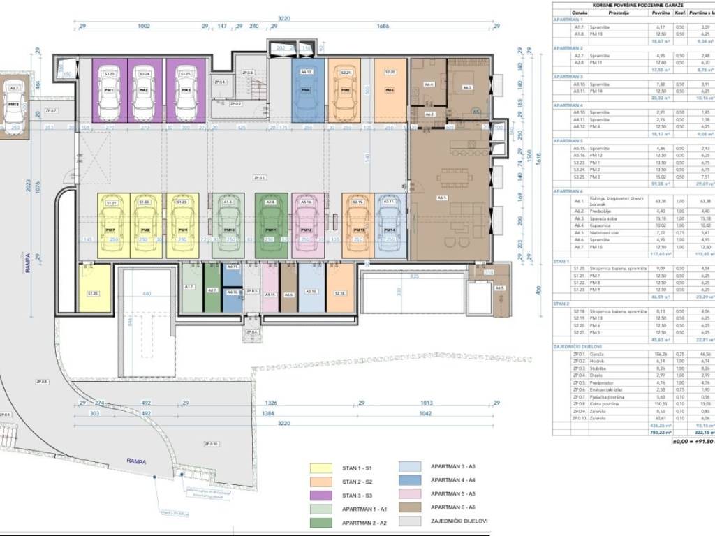 Ukupna korisna vrijednost neto površina stana S2 iznosi 251,18 m.