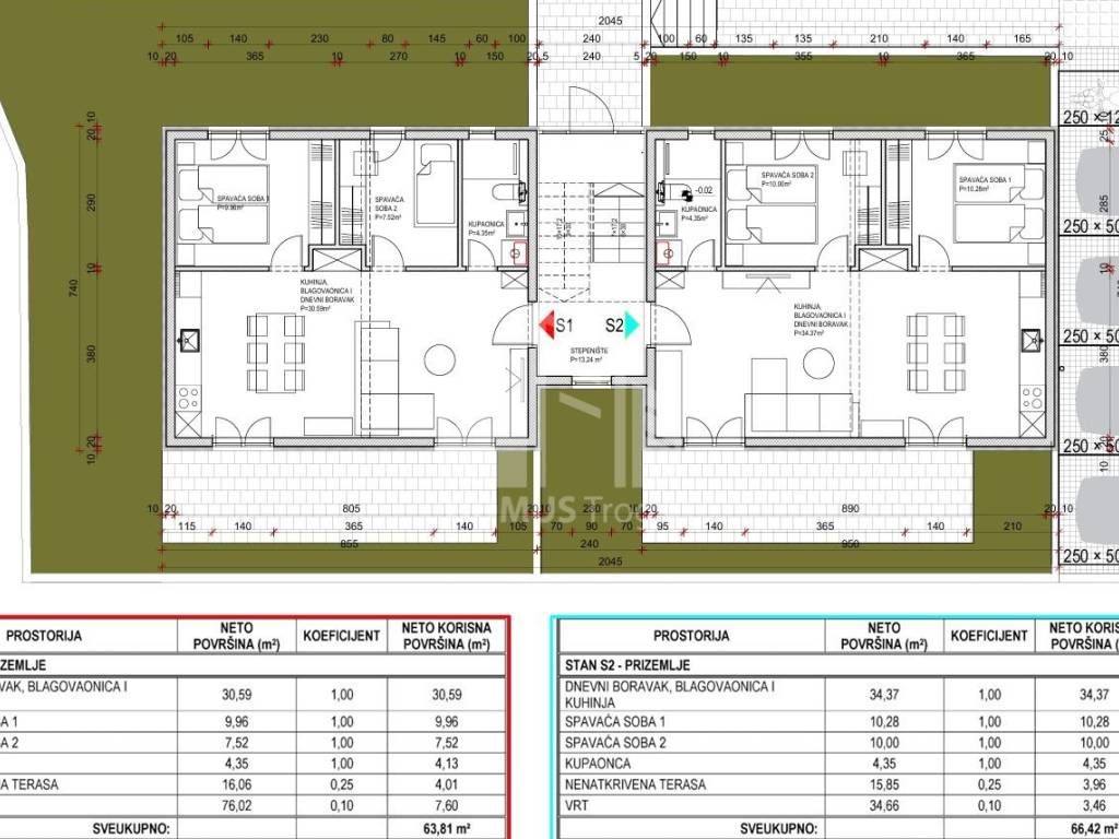 We offer for sale a two-bedroom apartment on the ground floor of a residential building under construction in Kaštel Sućurac.