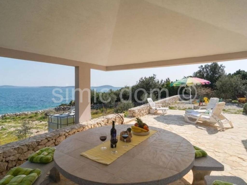 We are mediating the sale of a beautiful property located right next to the sea in a very quiet bay in the Sevid area. It is a main house of 50m2 with two bedrooms, a bathroom and a living room with a kitchen, and there is an additional, smaller building of 25m2, also decorated as a one-bedroom apartment. In front of the main house there is a paved terrace with a stone barbecue, perfect for quiet summer evenings. The impressive size of the plot of 1360m2 is a special feature, which guarantees exceptional peace and privacy. The yard is beautifully landscaped (olive trees and other Mediterranean vegetation) and regularly maintained. The sea is reached by a road decorated with a traditional stone wall, which particularly emphasizes the harmony of this property and the environment. Blended into the surrounding area, located right next to the sea on a very spacious plot and full of harmony and peace, this property is ideal for families, but also for the rental business. Ownership is neat.
