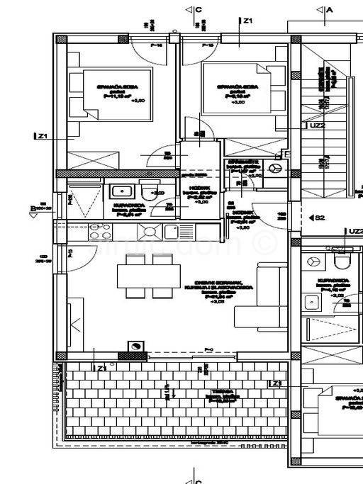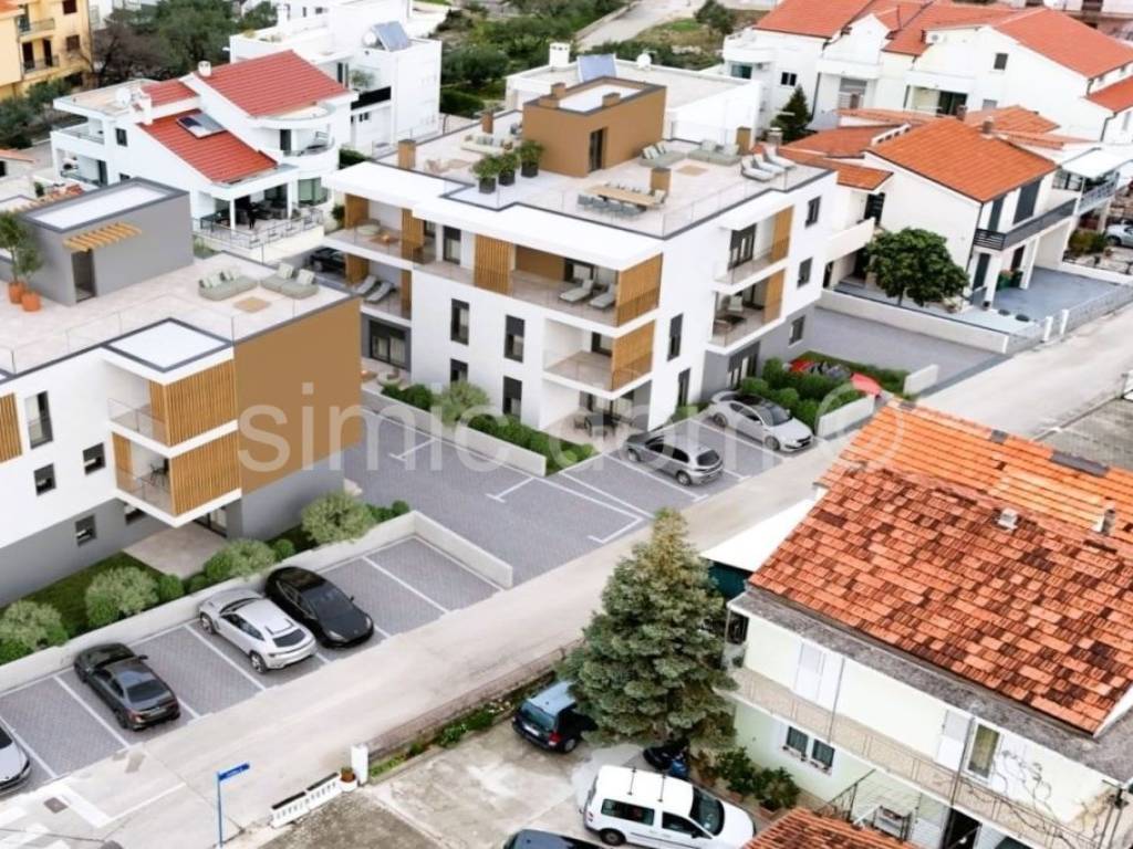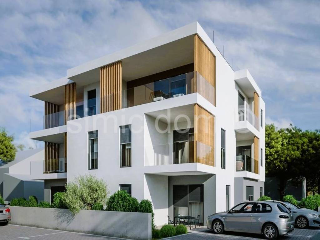Apartments in a new building, for sale located in a prime location near the center and beach in Vodice. The beach is only 400m away, while the center is 700m away. The building is being built by a company with many years of experience in building quality residential buildings in the Sibenik area, the buyer does not pay real estate tax. The apartment marked SJ2 is placed on the first floor of the building and has a total internal area of 52.66 m2 and an additional 16.25 m2 of terrace. With the included accessories and outdoor parking space, the apartment has a net area of 64 m2. The apartment consists of a hallway, bathroom, two bedrooms, laundry room and kitchen with dining room and living area that has access to a spacious terrace. The equipment in the apartments and the building includes: fire-resistant entrance doors, white matte interior doors, PVC-GELANA exterior joinery with insulated glass, aluminium shutters, roller and side mosquito nets, electric opening of shutters on all windows, intercom - intercom, antenna system, underfloor heating in the bathroom, air conditioning with heating and cooling brand GREE or MIDEA with WI-FI (one unit on the outside, three units in the rooms, living room and kitchen one unit outside and one inside), 10mm ceramic floors, large dimensions, high-quality laminate 12 mm thick. The terraces will be enclosed by a glass fence made of tempered glass and the building will have a connection (chimney) for a solid fuel stove. A parking space is included in the price with the possibility of purchasing an additional space. The expected completion of the works is summer 2026.
