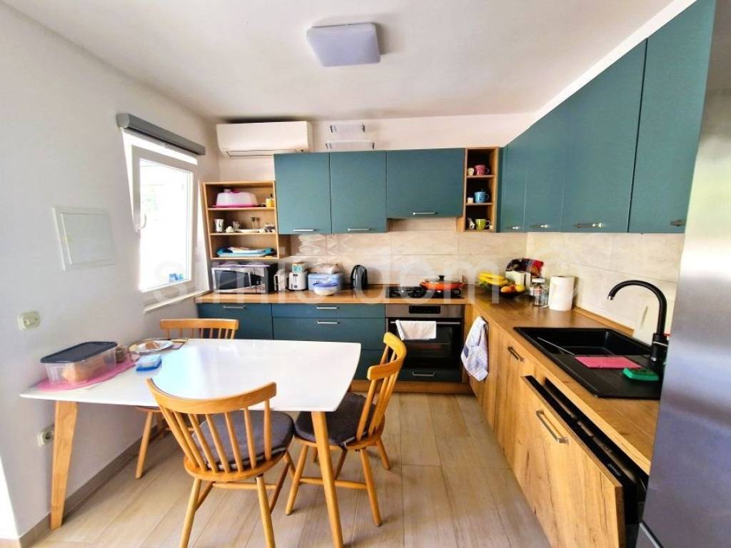 An apartment placed on the ground floor of a small building, for sale in Rogoznica. The apartments in the building are neatly divided into separate units, located just a few steps from the beach, ideal for families with children and a 15-minute walk from the center of Rogoznica. It has a total area of 54 m2, and it also has a storage room and two outdoor parking spaces. With the accessories, the apartment has a net usable area of 60 m2. The apartment consists of a beautiful kitchen with dining room, spacious living room, bathroom and two bedrooms. The apartment also has a spacious covered terrace, great for enjoying summer evenings. The apartment is being sold furnished and is in excellent condition, ready to move in. Ownership is neat.