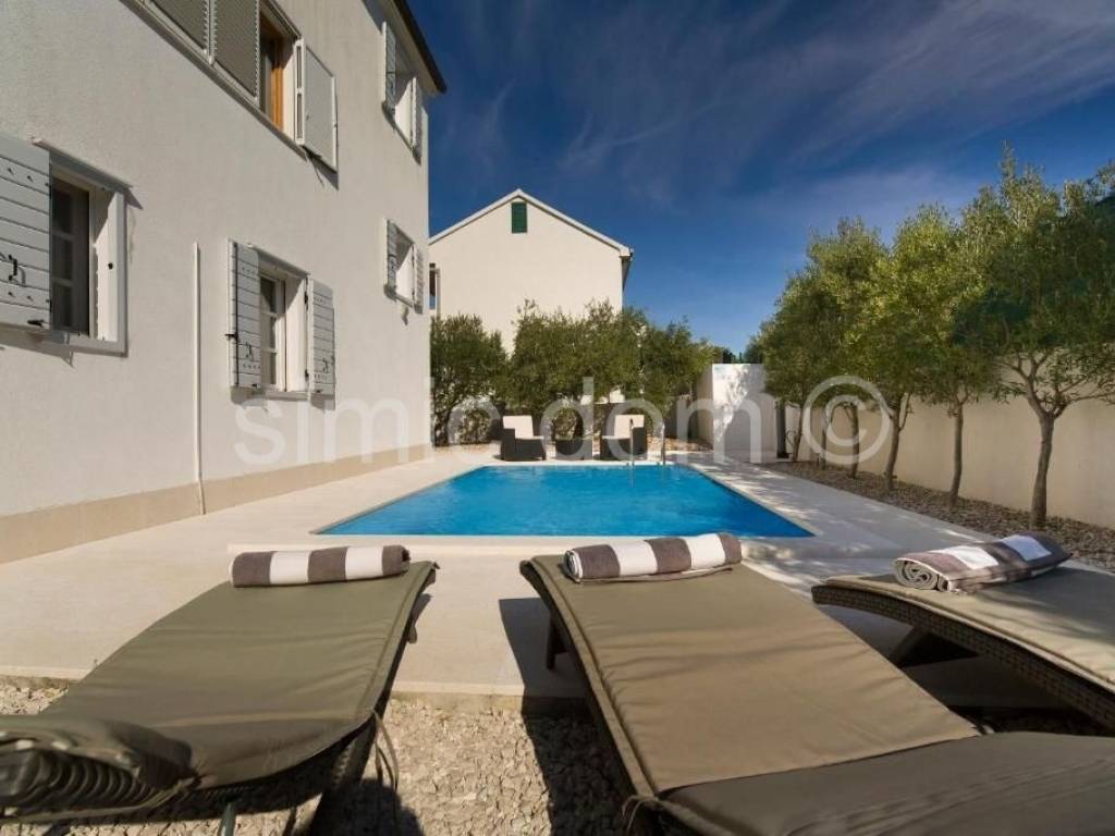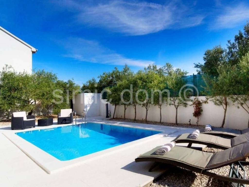 We are mediating the sale of truly beautiful, very spacious and modern villa in a very quiet bay in the immediate vicinity of Vinisce. The villa extends over the ground floor, first floor and attic and has a total gross area of 254 m2. On the ground floor there is an entrance area and three bedrooms with two bathrooms. The lowest floor of the house is surrounded by an impressively landscaped garden with a beautiful terrace, swimming pool, several olive trees and other typical Mediterranean vegetation. On the middle floor, however, there is a very spacious kitchen with a dining room and living room as well as another bathroom. This floor is also adorned with two smaller terraces that offer an unforgettable view of the sea and the entire surrounding area. The last floor of the house is very interesting and modernly designed as a separate unit from the bedroom and bathroom. From this part of the house, more precisely from the large terrace, there is also a beautiful view of the sea, which cannot be blocked due to the slope of the terrain. The property itself is tastefully decorated and furnished and gives the impression of a very functional and aesthetically appealing villa. The peaceful location, impressive garden (there is also a parking space), a number of beautiful details, quality construction, beautiful views - are a guarantee of the high profitability of the property. Ownership is in order.