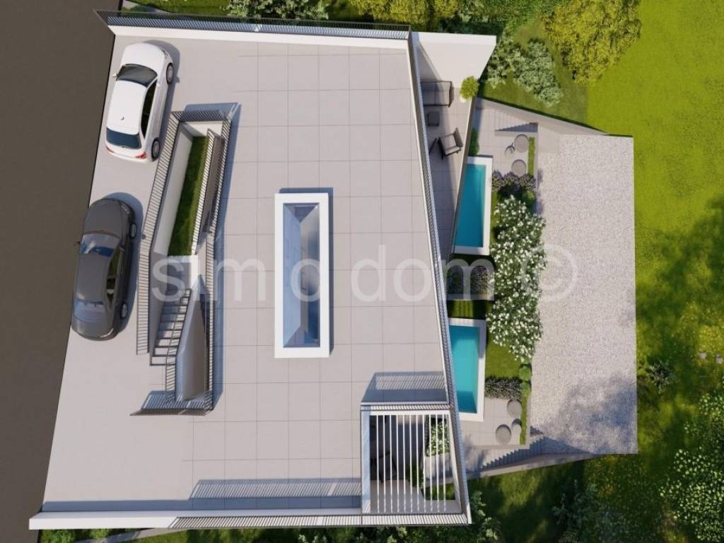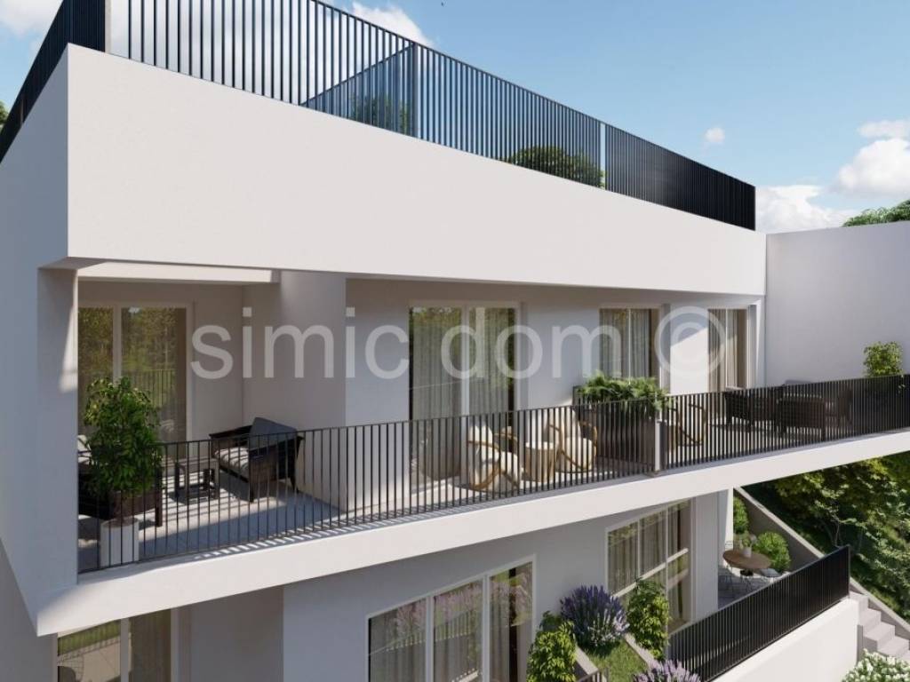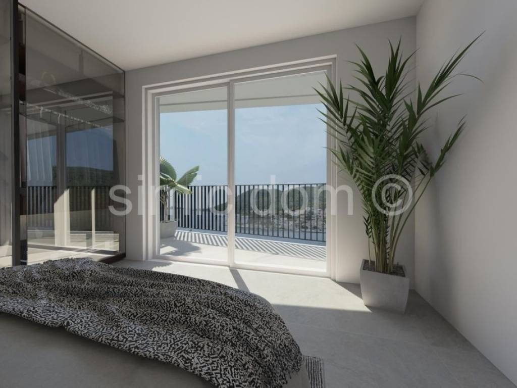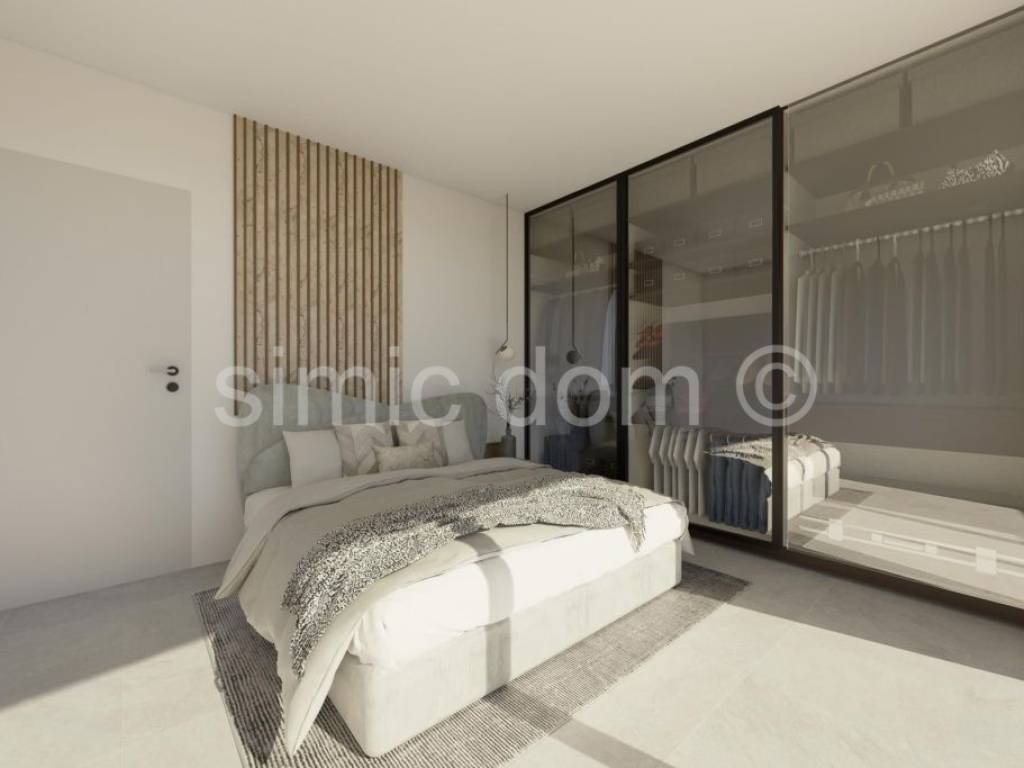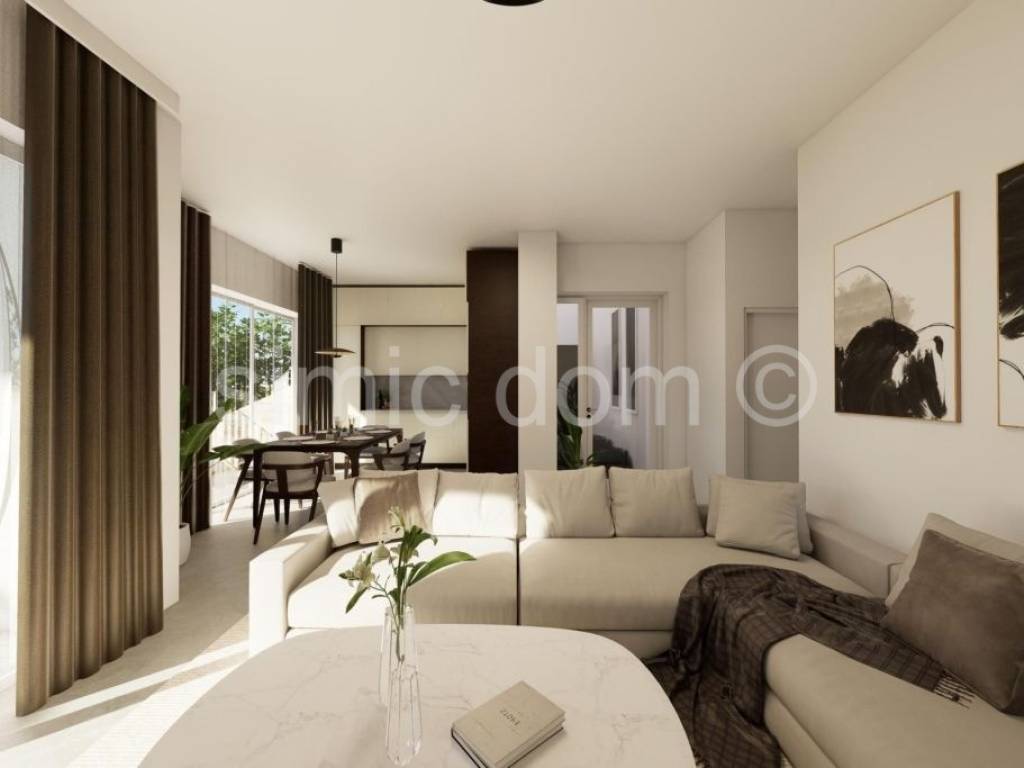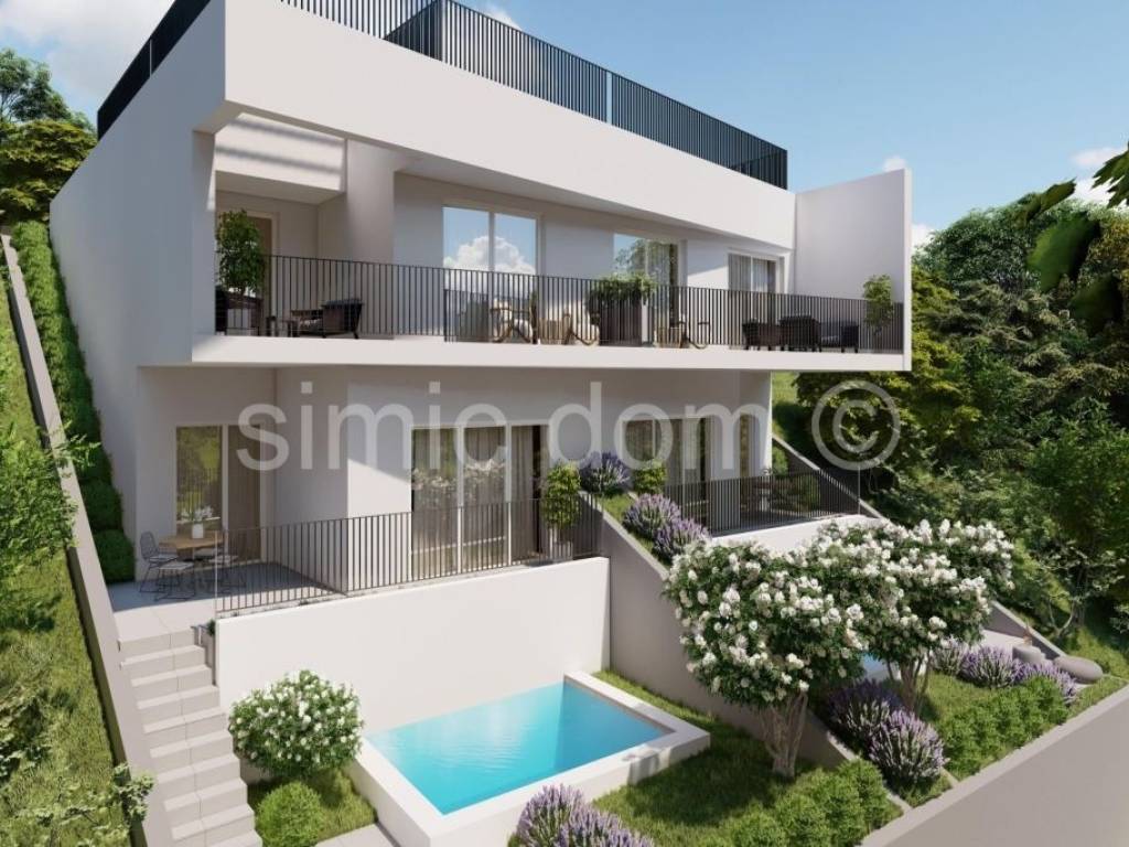 We are mediating the sale of an excellent opportunity to purchase a peaceful family oasis in one of the most beautiful bays on the southern side of Korcula. These are two level apartments (east and west) that span the ground floor and first floor. The area of the east apartment is 126.10m2, while the area of the west one is 128.03. On the ground floor there is a staircase, storage room, toilet and a large living room with kitchen and dining room (popular open concept). It is from this living area that you can exit to an impressive terrace with a spacious swimming pool, and for complete enjoyment, we emphasize that one part of the terrace is covered. On the first floor, there are two bedrooms, a bathroom and a beautiful balcony with a beautiful view of the sea and the entire bay. The location itself is very quiet, it is a few minutes walk to amenities such as a restaurant and a shop, and the building is located in the second row to the sea (30m from the sea). The carefully designed garden also includes a parking space for each apartment, while we especially highlight the exceptional quality of the construction itself (heated swimming pool, complete heating and cooling solution, etc.). The apartment will be handed over to the buyers in a high-quality unfinished state. Ownership is in order.