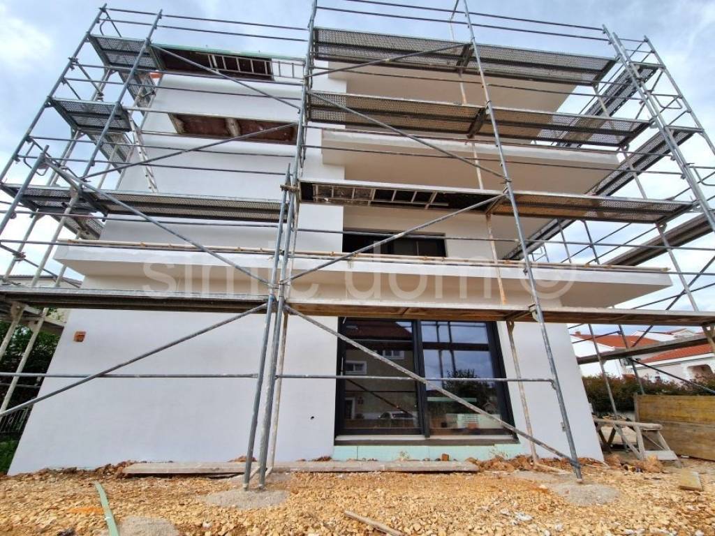 An apartment in a quiet street in a new building located near the center of Trogir is for sale, just a 10-minute walk away and close to all other amenities, shops, cafes, etc. The apartment is placed on the ground floor of a small building, is southwest-facing and has an internal area of 53.45 m2 and another 23 m2 of terrace, and also has a 50 m2 garden. The net usable area of the apartment with the annexes is 72 m2. The apartment consists of two bedrooms, bathroom, hallway, kitchen with dining room and living room with access to a covered terrace. The apartment has one parking space included in the price. The apartment is sold on a turnkey basis, with a fitted bathroom, inverter air conditioning, underfloor heating, PVC joinery with 3 glasses and mosquito nets, quality ceramics, security doors, 10 cm thermal facade... Expected move-in is 8/2025.
