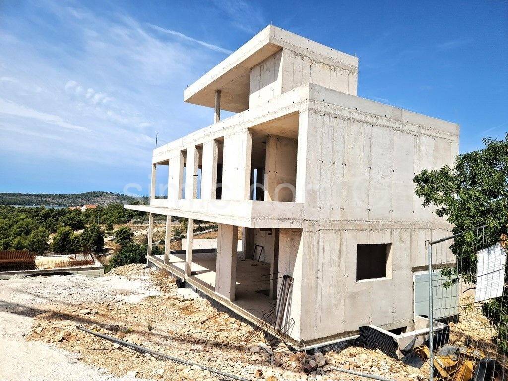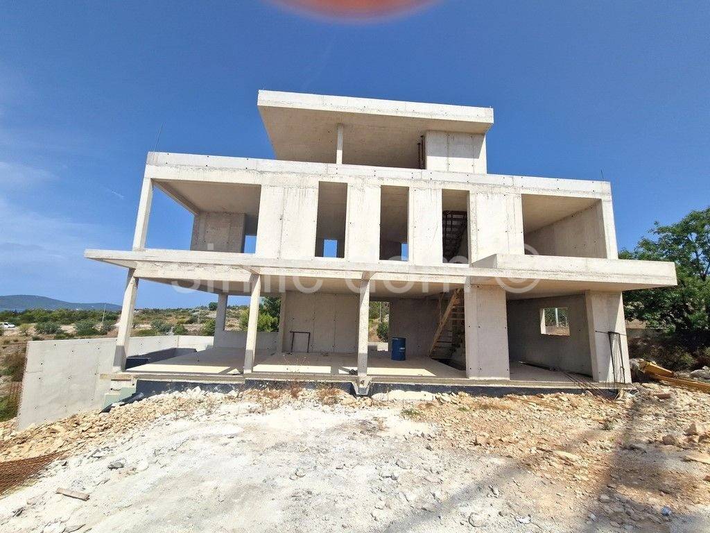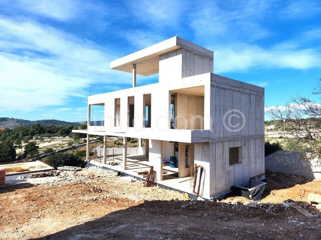 For sale is a modern villa that is under construction, located in Milna on the island of Brac, with a wonderful, open view of the sea and Milna. The building has a total usable area of 330 m2, while the area of the plot is 564 m2. The house has 4 floors that are interconnected by an internal staircase. The basement space can be arranged as a gym, a wine cellar, a sauna or even a cinema space. On the ground floor of the villa there is a kitchen, a dining room, a living room and a toilet. The first floor contains three bedrooms with private bathrooms. The second floor has a superstructure that can be a fourth bedroom or, for example, a multifunctional room with a large terrace. The property also includes a garage for two cars. The stated price is valid for a completed, air-conditioned and unfurnished villa with a swimming pool and landscaped surroundings.
