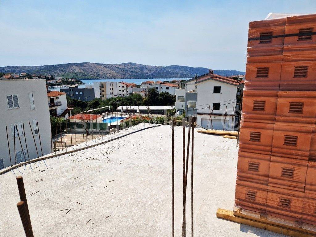For sale is an apartment in new construction near Trogir and a 10-minute drive from the airport. This is a smaller building with a total of three apartments in a quiet street not far from a beautiful beach, which is 450m away. Apartment S2 is located on the first floor of the building and has a total floor area of 95m2, of which 73m2 is internal surface. With the calculated coefficients, the apartment has a total of 84m2. The apartment consists of a hallway, two bathrooms, three bedrooms and an open-concept kitchen with a dining room and a living room that opens onto a terrace with a view of the sea. An outdoor parking space is included in the price of the apartment. The building is being built by an investor with many years of experience. The apartment will be sold on a turnkey basis with equipped bathrooms, all rooms and bathrooms will have underfloor heating, the exterior joinery will have mosquito nets and all rooms will have air conditioners. This apartment is a great investment for buyers who want a property for vacation but also for living, since it is located not far from Trogir with all the necessary facilities, including the airport. Expected move-in is autumn 2025.