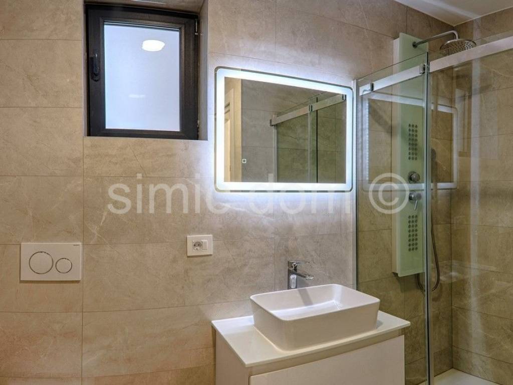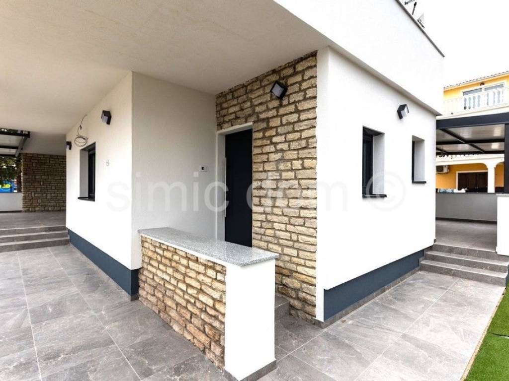 For sale is a spacious newly renovated apartment located on the ground floor of a smaller building that has been completely renovated. The apartment has a total internal area of 97.27 m2 and also has a covered terrace with a floor area of 64 m2 and a yard of 75 m2. Calculated with the coefficients for the terraces, two private parking spaces and the yard, the apartment has an area of 142.42m2. It consists of three bedrooms, two bathrooms, a toilet, a storage room, a kitchen with a dining room and a living room with access to a beautiful loggia. The apartment has two entrances, which is a big advantage because it can be used as two separate apartments if necessary. The building has been completely renovated, has a thermal facade and PVC joinery with triple glazing. The apartment is equipped with Mitsubishi air conditioning, electric roller shutters, mosquito nets, ceramic tiles and floor heating and Villeroy Boch sanitary ware in the bathroom. The building is connected to the city sewer system and is located in a great location in Vodice, close to all amenities. It is only 300 meters away from the beach. Ownership in order.