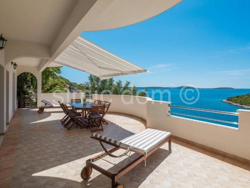 A fully furnished, equipped and well-maintained house is for sale, situated in one of the most beautiful and peaceful bays along the entire central Dalmatian coast. Total area of the house is 165m2 and it consists of a ground floor and the first floor. The ground floor features a studio apartment. This level of the house also offers a beautiful terrace, a sunbathing area and two zones for pleasant dining moments. Upstairs there are two one-bedroom apartments, 40m2 each. Both have access to a large terrace of 47m2, which offers spectacular views of the sea, the bay and the nearby islands. A special advantage of this property is a paved exterior space with a carefully maintained garden. Parking for four cars is also provided. Additional emphasis is on the direct access to the sea. This is a unique property placed only 50m from the crystal-clear sea, so it is an ideal choice for your relaxing vacation, but also as a rental property.