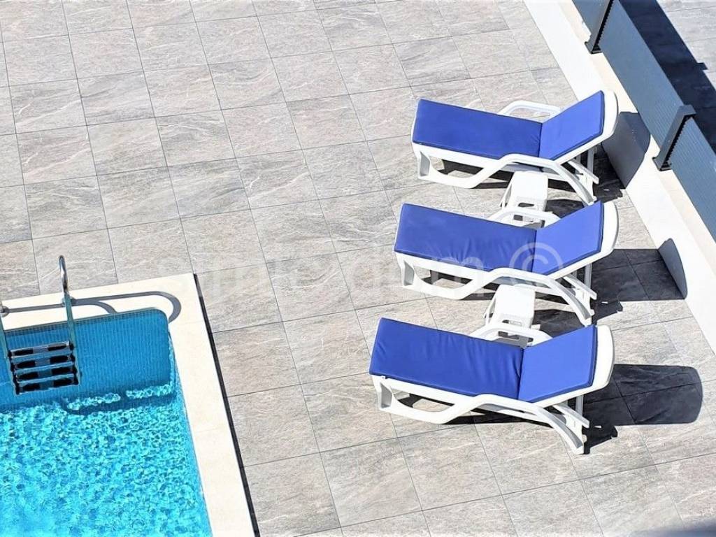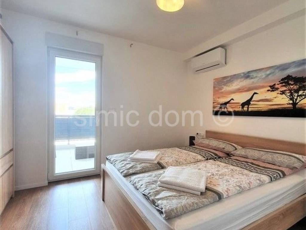 For sale is a beautiful two-level apartment located in a newly-built building, near a beautiful pebble beach in Okrug Gornji. The apartment is fully furnished and well-equipped and has a shared swimming pool. It has a total area of about 80m2, i.e. 62m2 of interior space, and each floor of the apartment has a beautiful spacious loggia of 9m2 with a beautiful view. On the first floor of the apartment there are two bedrooms, a bathroom, a hallway, an internal staircase and a loggia accessed from one bedroom. On the upper floor there is an entrance area, a small wardrobe, a bathroom and a kitchen with a dining area and an open-concept living room with an exit to the second loggia. The apartment is fully equipped, air-conditioned and ready to move in, and it also has one outdoor parking space, as well as the convenience of using the shared swimming pool and sunbathing area in the courtyard of the building. Ownership in order.