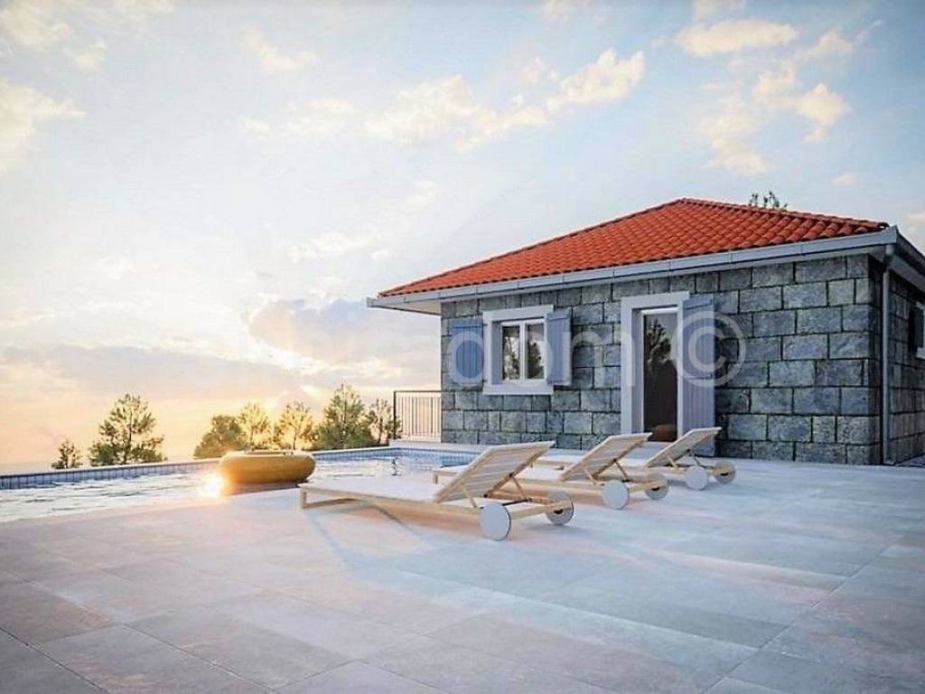 For sale is a beautiful detached house in new construction, in a wider area above Rogoznica. The house is placed on a plot of 440 m2, at about 2 km from the sea and the beach. It consists of two levels and has a total area of 100m2. On the ground floor there are two bedrooms, a bathroom and a large terrace, and on the first floor there is a bathroom, a kitchen with a dining room and a living room with access to a spacious terrace with a swimming pool and a sunbathing area. The house is built of quality materials and upon completion will be air-conditioned, equipped with quality carpentry, ceramics and sanitary ware. The house offers a phenomenal panoramic view of the entire archipelago around Rogoznica and the surrounding hills. There is a parking area for two cars in the beautiful exterior. The property is expected to be completed and move-in ready by the end of the year.
