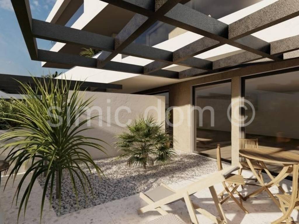 We mediate in the sale of an apartment located 200m from the sea, in one of the most sought-after locations on the island of Ciovo. The apartment is located on the ground floor of a smaller building that offers peace and privacy. It consists of two bedrooms, two bathrooms and a living room with kitchen and dining room, which is a total of 51 m2 of closed area. There is also a covered terrace (15m2), a courtyard of 54m2 and a garden of 15m2. The apartment also offers a parking space included in the price. The location of the building offers beautiful views of the sea and the surrounding area. The building will be finished before the 2024 season. Ownership in order.