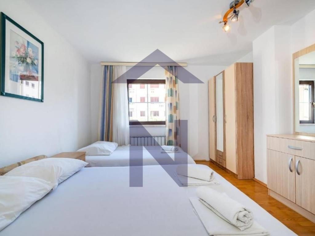 Apartman sa dvije spavaće sobe, kuhinjom i dnevnim boravkom i kupaonicom.