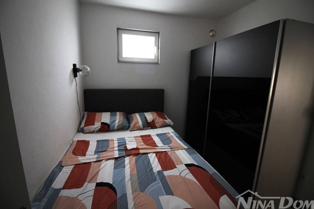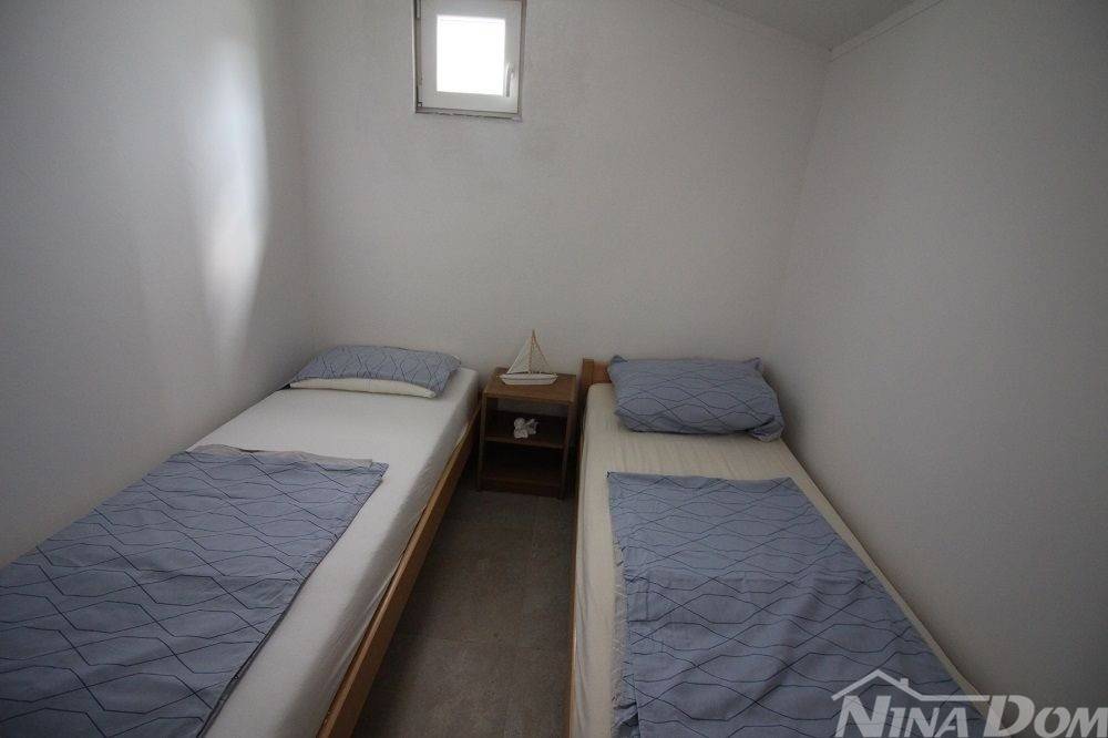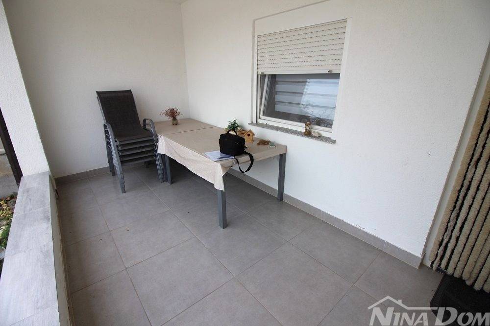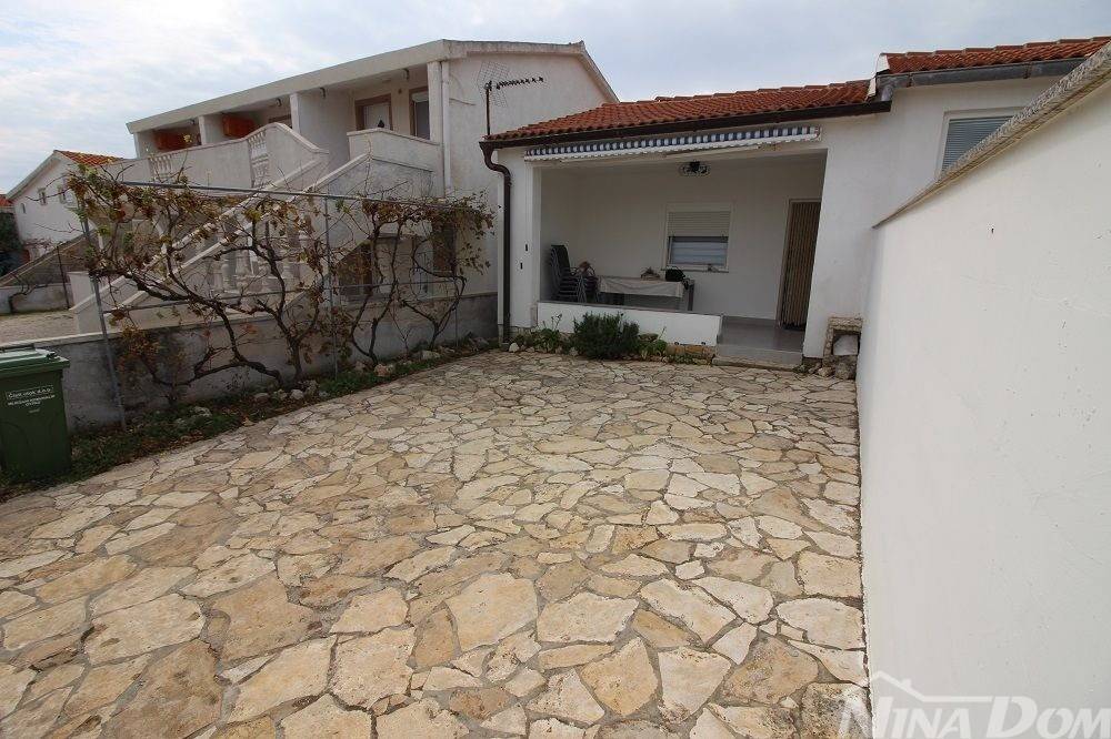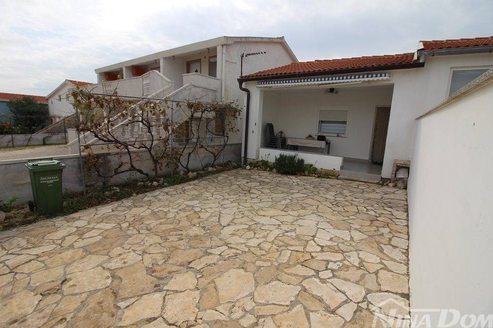 The apartment in a row, built on a separate plot of land, with a total area of 102 m2. It consists of a covered terrace, kitchen with living room, bathroom, two bedrooms with a usable area of 52 m2 and a loggia of 6 m2 which serves as a storage room. Parking space paved with Benkovac stone, Completely furnished, air-conditioned. Separate connection to the electricity grid, water from a drilled well, It is 500 meters away from the sea and the beach.