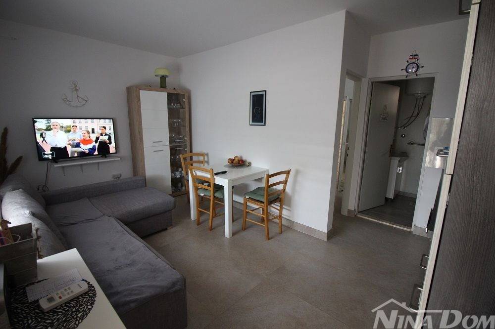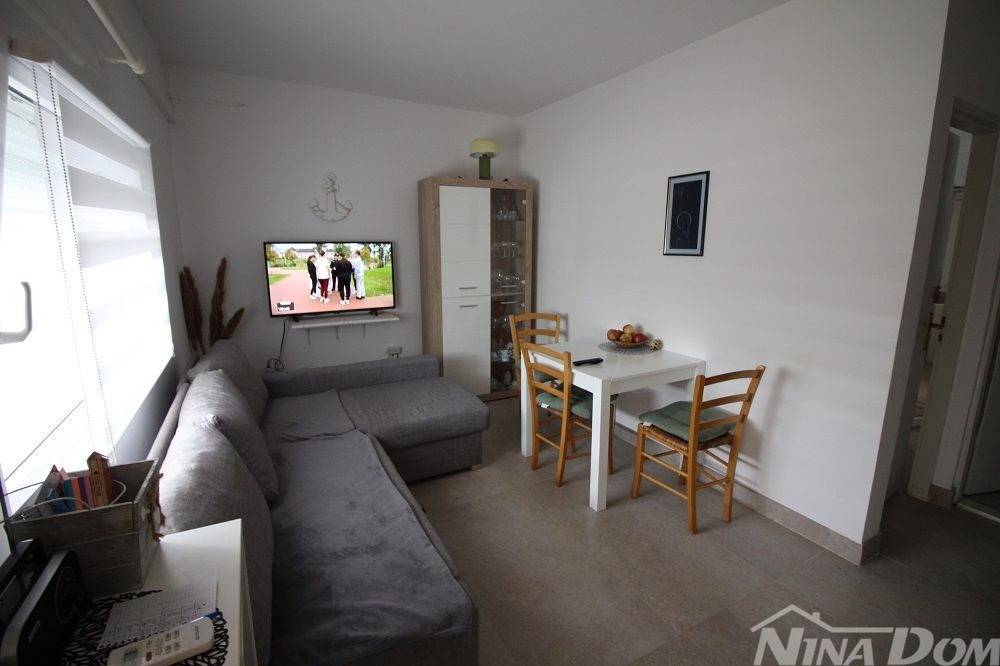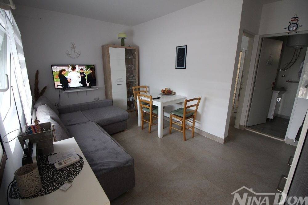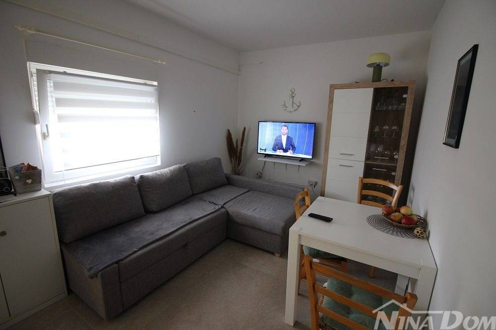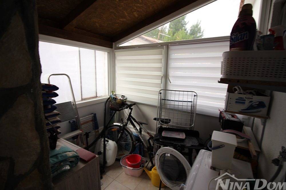 The apartment in a row, built on a separate plot of land, with a total area of 102 m2. It consists of a covered terrace, kitchen with living room, bathroom, two bedrooms with a usable area of 52 m2 and a loggia of 6 m2 which serves as a storage room. Parking space paved with Benkovac stone, Completely furnished, air-conditioned. Separate connection to the electricity grid, water from a drilled well, It is 500 meters away from the sea and the beach.