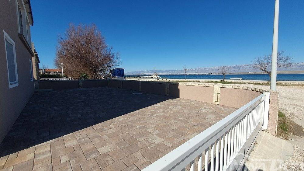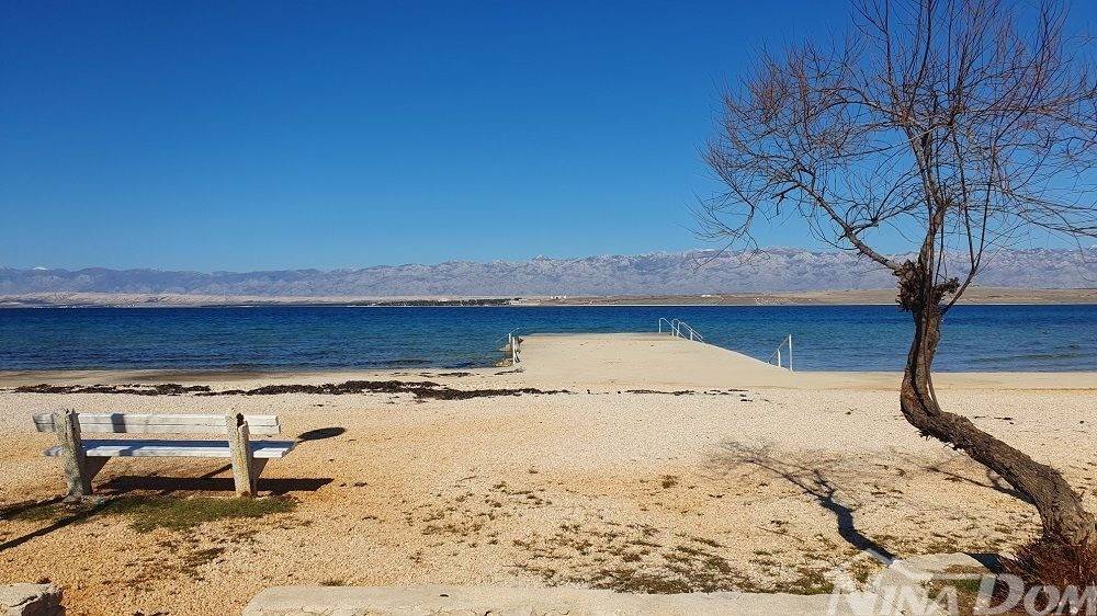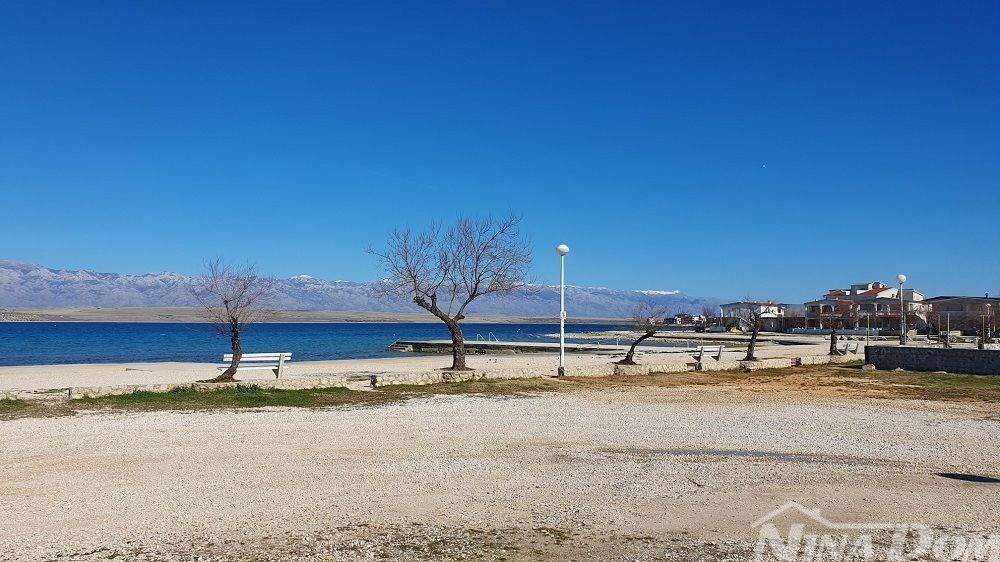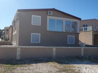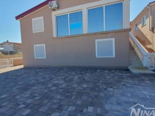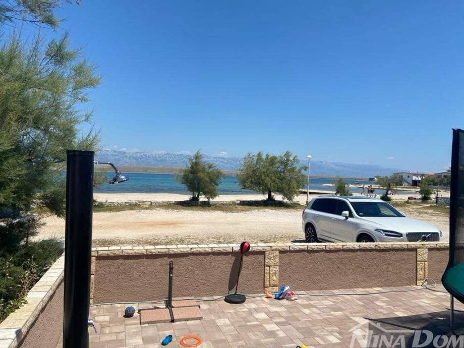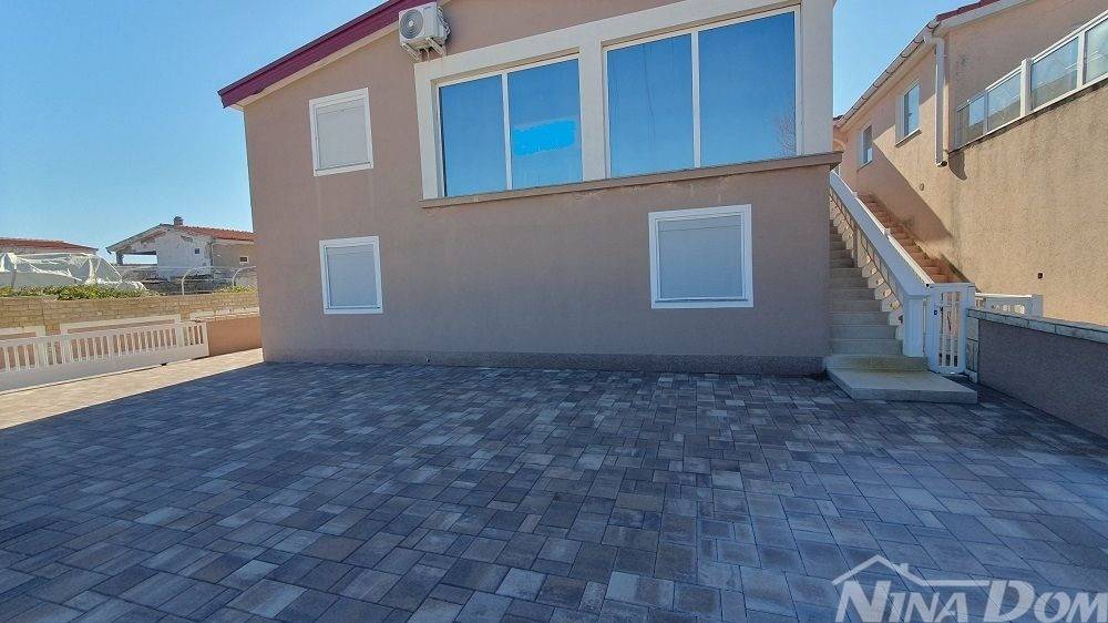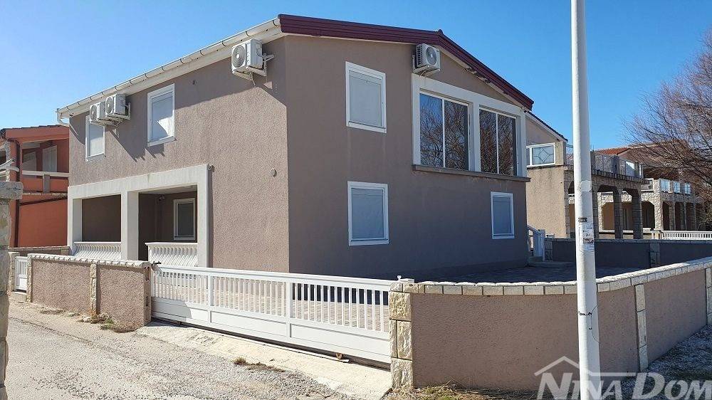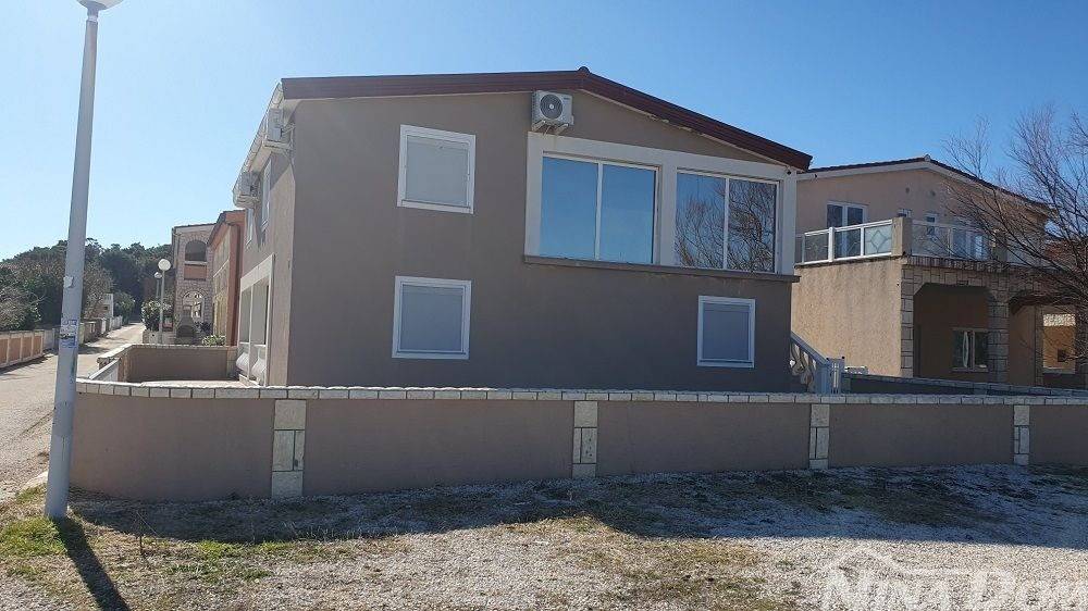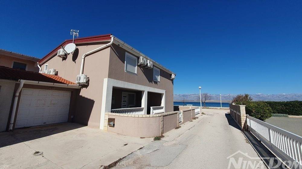 1 red do mora s prekrasnim pogledom na more i Velebit. Prizemlje: garaža 17 m2, terasa, kuhinja s dnevnim boravkom, 3 spavaće sobe, kupaona. Kat: vanjske stepenice: terasa, zatvorena lođa, kuhinja s dnevnim boravkom, 3 spavaće sobe, kupaona. Nekretnina je 2022 godine kompletno renovirana, klimatizirana, s uređenom okućnicom.