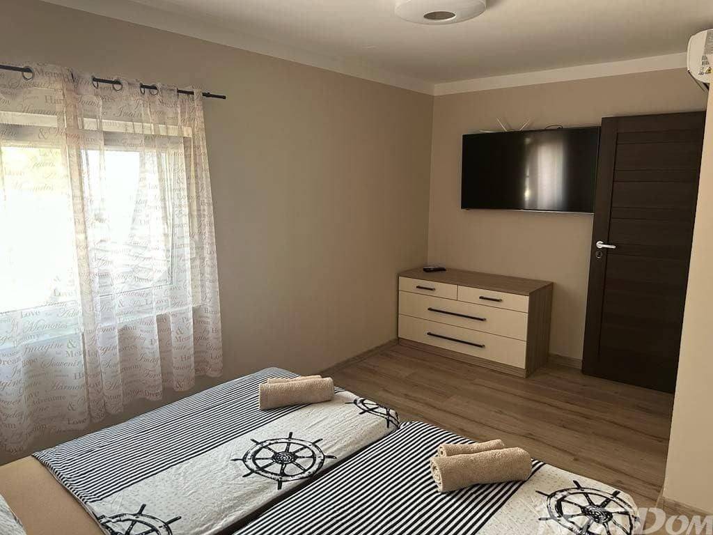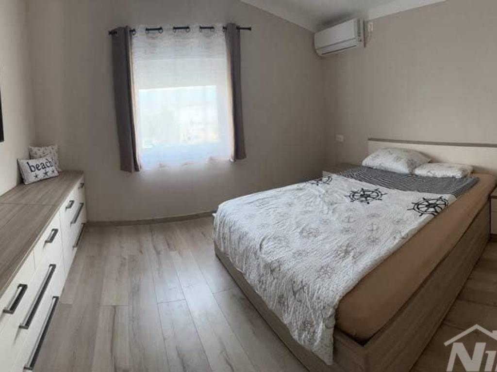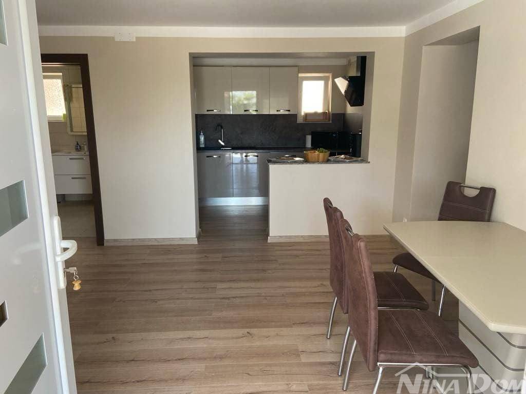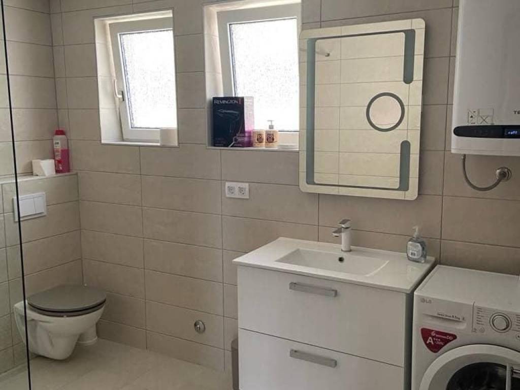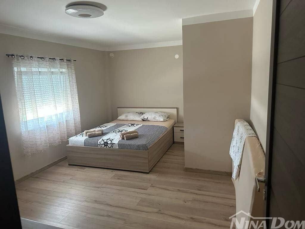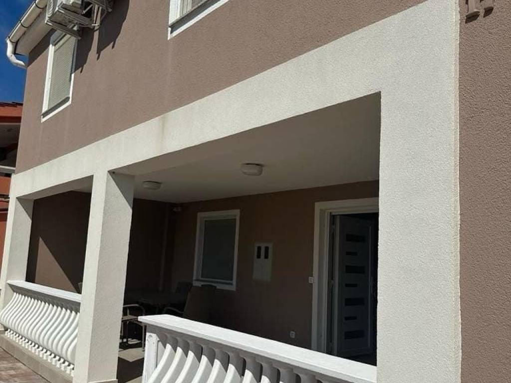 1 red do mora s prekrasnim pogledom na more i Velebit. Prizemlje: garaža 17 m2, terasa, kuhinja s dnevnim boravkom, 3 spavaće sobe, kupaona. Kat: vanjske stepenice: terasa, zatvorena lođa, kuhinja s dnevnim boravkom, 3 spavaće sobe, kupaona. Nekretnina je 2022 godine kompletno renovirana, klimatizirana, s uređenom okućnicom.