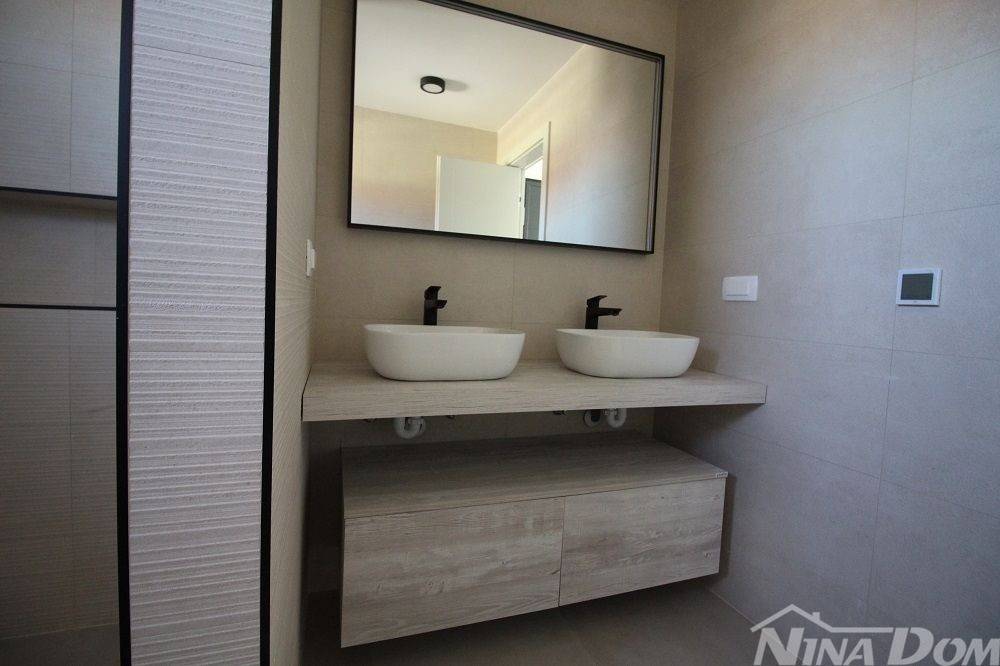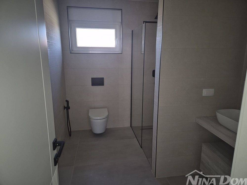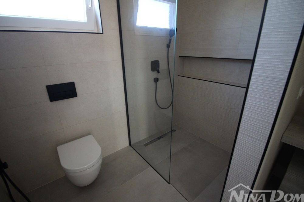 U ponudi su tri apartmana potpuno identični, opremljeni hans grohe sanitarijama, ratificirane dizajnerske talijanske pločice, protuprovalnim vratima, roletne električne, komarnici na svim otvorima, klima uređaji u svim sobama i dnevnom boravku. Podna grijanja u cijelom apartmanu s paljenjem preko wf mreže.