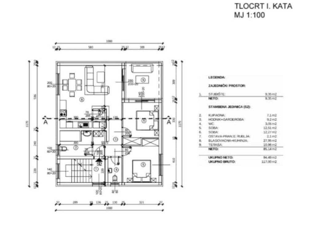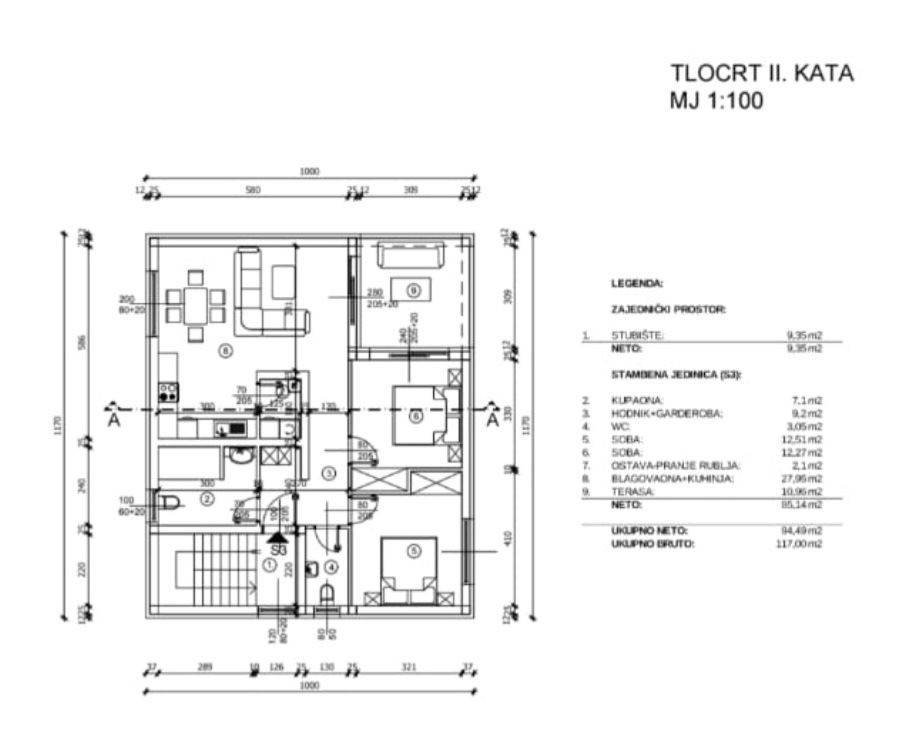 Apartman na drugom katu s dva parkirna mjesta i cijelom krovnom terasom 450 000