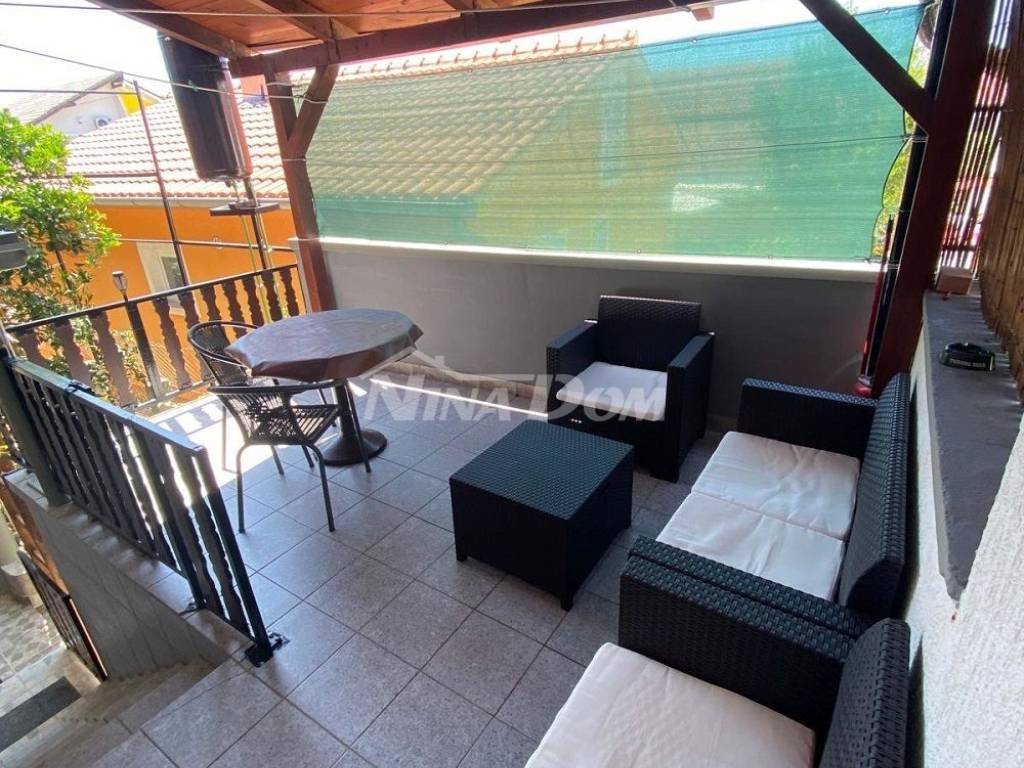 Prizemlje: tri spavaće sobe, kupaona, wc, kuhonja blagovaona i dnevni boravak u sklopu ostakljene netkrivene terase sa kliznim alu stijenama. U prizemlju se nalazi dodatni studio apartman.