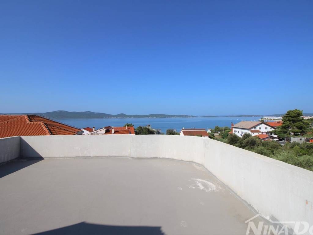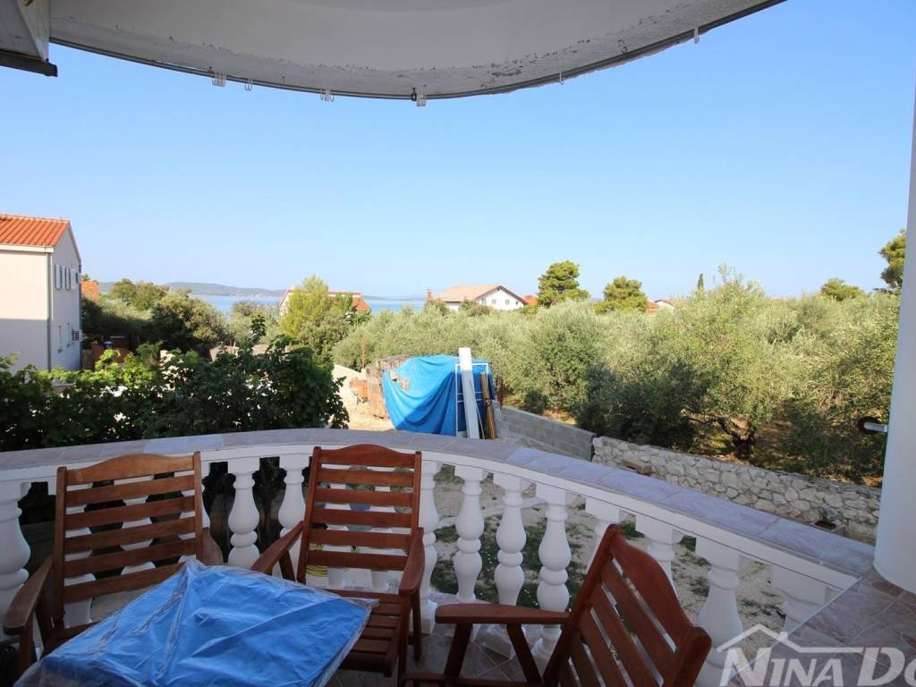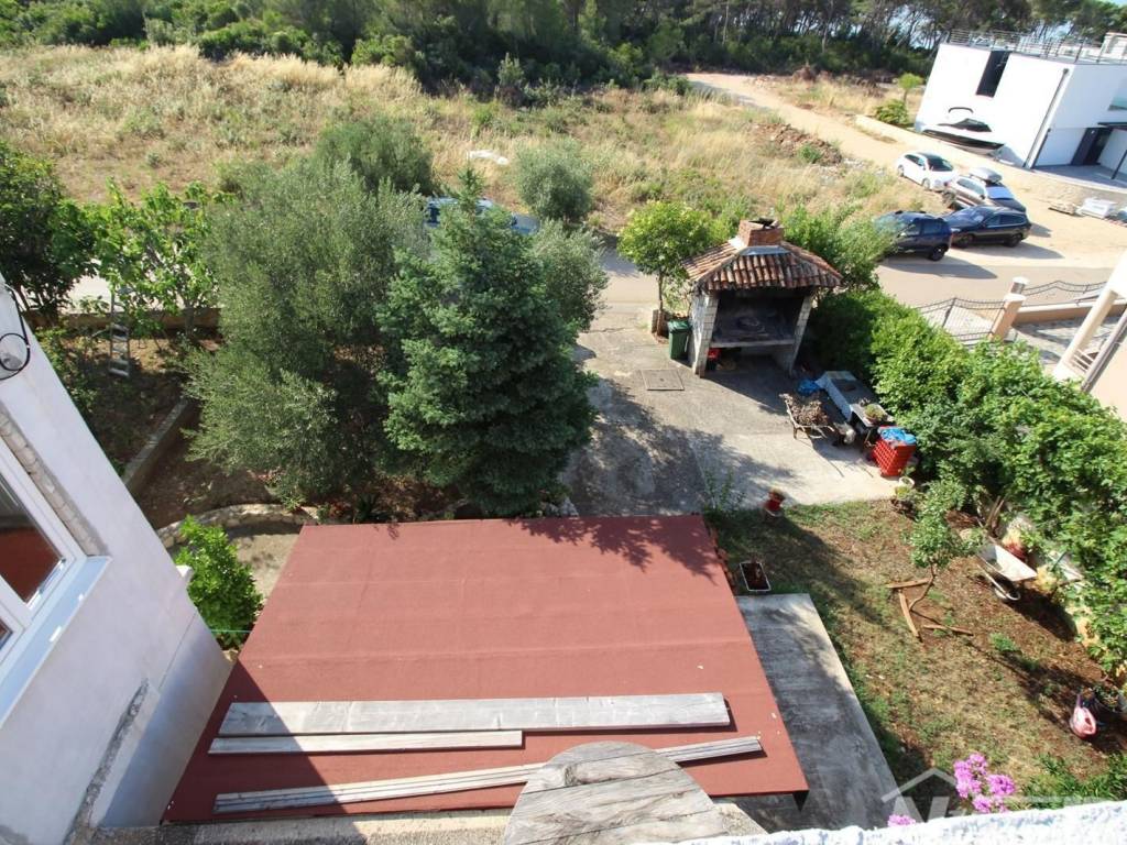 Prodaje se kuća na mirnoj lokaciji 100 m od uređene plaže sa velikim dvorištem i pogledom na more i otoke. Sastoji se od podruma, suterena na kojem se nalaazi jednosoban veliki stan, prizemlja na kojem je studio apartman, visokog prizemlja na kojem je još jedan jednosoban stan, prvog kata na kojem se nalazi dvoetažni stan od 160 m2 sa izlazom na krovnu terasu. Grijanje je izvedeno uz pomoć ....
