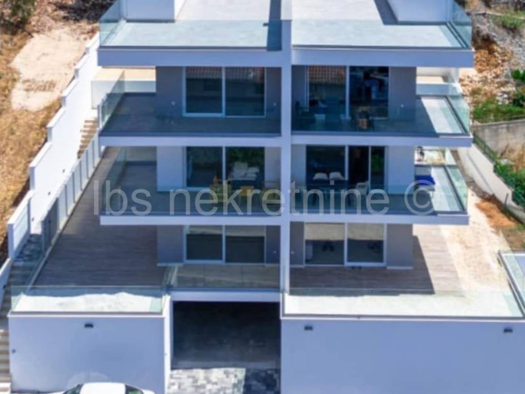 Auf der UNESCO-Weltkulturerbestätte von Trogir, in der Nähe von Ciova, 100 Meter von der Küste und dem Ureinwohnerplatz entfernt, haben wir ein modernes Bauwerk mit zwei Gebäude in einer neuen Preisklasse erschiert.