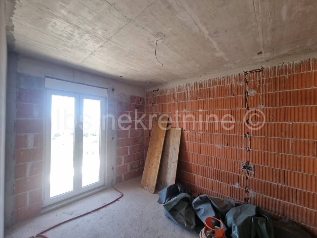 Podstrana, stan u novogradnji tlocrtne površine 107.55 m2. Stan se sastoji od: predsoblja, kuhinje, blagovaone, dnevnog boravka, dvije sobe, ostave, balkona, terase i vrta, Ispred zgrade nalazi se parking mjesto. Završetak radova kraj 2024 godine.