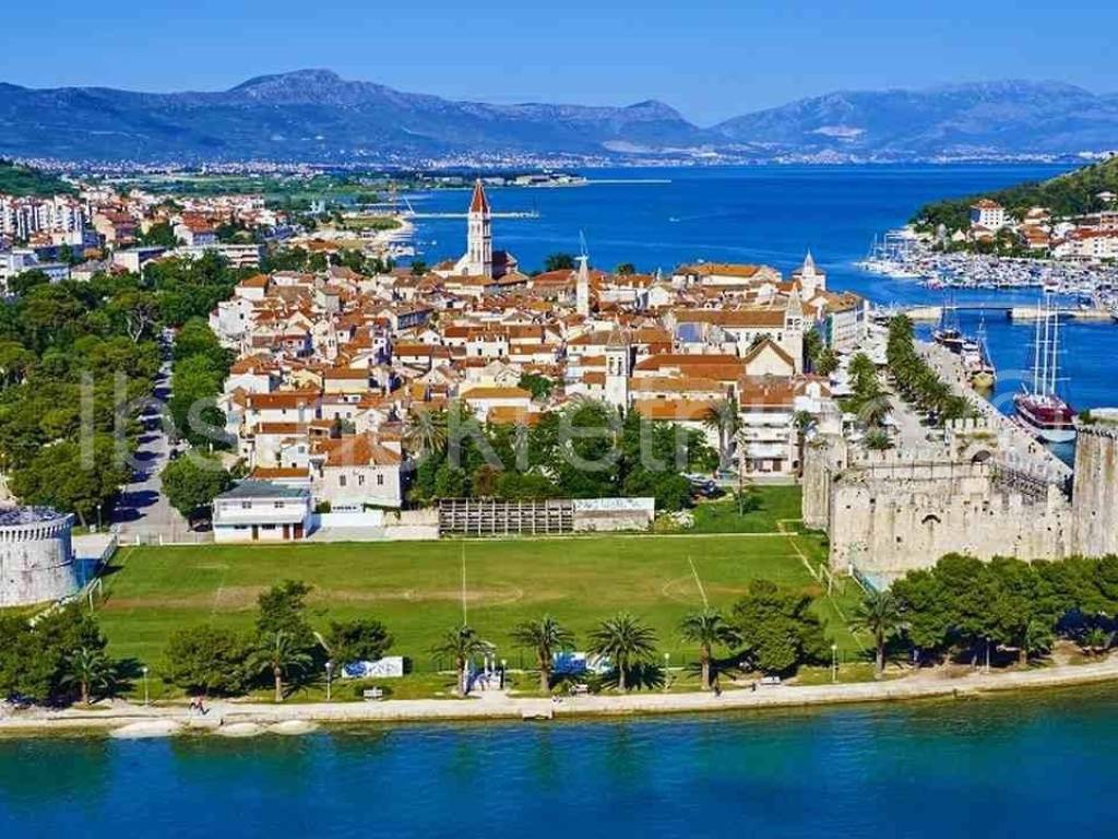 Posredujemo pri prodaji građevinskog zemljišta s prekrasnim pogledom. Blizina plaže, samoposluge i ostalih sadržaja je 250 metara. Pristupni put je širine 5 metara, kanalizacijske cijevi provedene, voda i struja u neposrednoj blizini. Vlasništvo uredno. Po GUPu maksimalna dopuštena visina 11m metara. Udaljenost od Trogira 3 km.