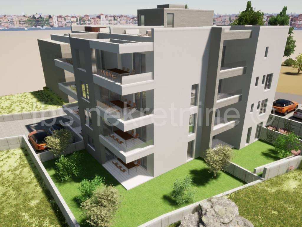 Posredujemo pri prodaji Penthouse stana u izgradnji na otoku Čiovo, Okrug Gornji s prekrasnim pogledom. Stan se nalazi na vrhu male stambene zgrade s ukupno 11 stanova. Ukupna unutarnja površina stana je 93m2, a vanjski, otvoreni dio se sastoji od Loggia 11,4m2 i dvije terase od 24m2 i 94m2. Unutarnji dio se sastoji od kuhinje, ,dnevnog boravka, blagovaonice, hodnika, kupaonice, predsoblja, tri(3) spavaće sobe i kupaonice. Na samoj krovnoj terasi je predviđeno mjesto za bazen ili Jacuzzi s potrebnim instalacijama. U zgradi postoji lift(pristup invalidima), velike staklene stijenke na aluminijskim balkonskim vratima s električnim roletnama, komarice, podno grijanje, vrhunski klima uređaji. Stanu pripada jedno parkirno mjesto. Udaljenost od gradske plaže iznosi oko 250m a do centra mjesta oko 350m.