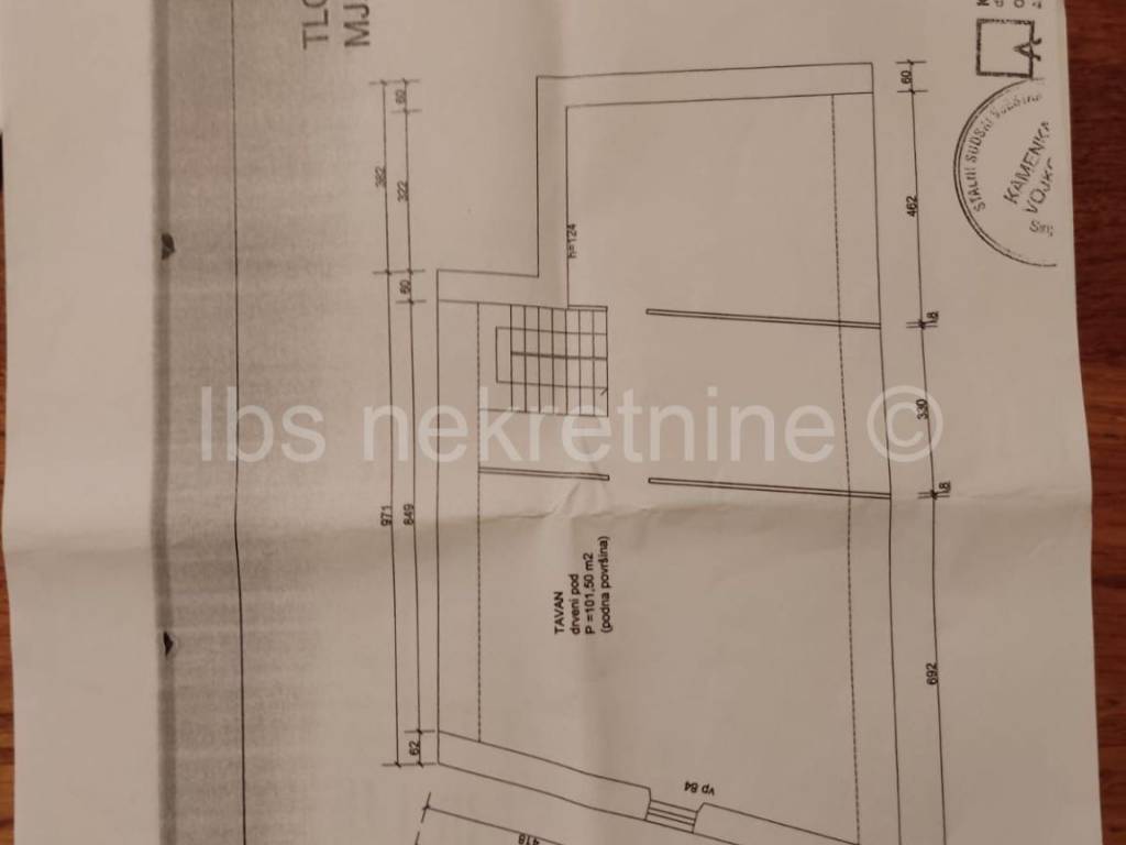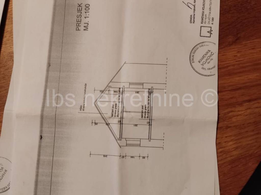 Na dobroj lokaciji u blizini centra grada, sve potrebno u blizini, škola, vrtić, dućani. Sastoji se od kata, neto površine 100 m2 i pripadajućeg potkrovlja iste kvadrature. Mogućnost izrade 2 ili tri stana. Vlasništvo uredno. Potrebna kompletna renovacija.