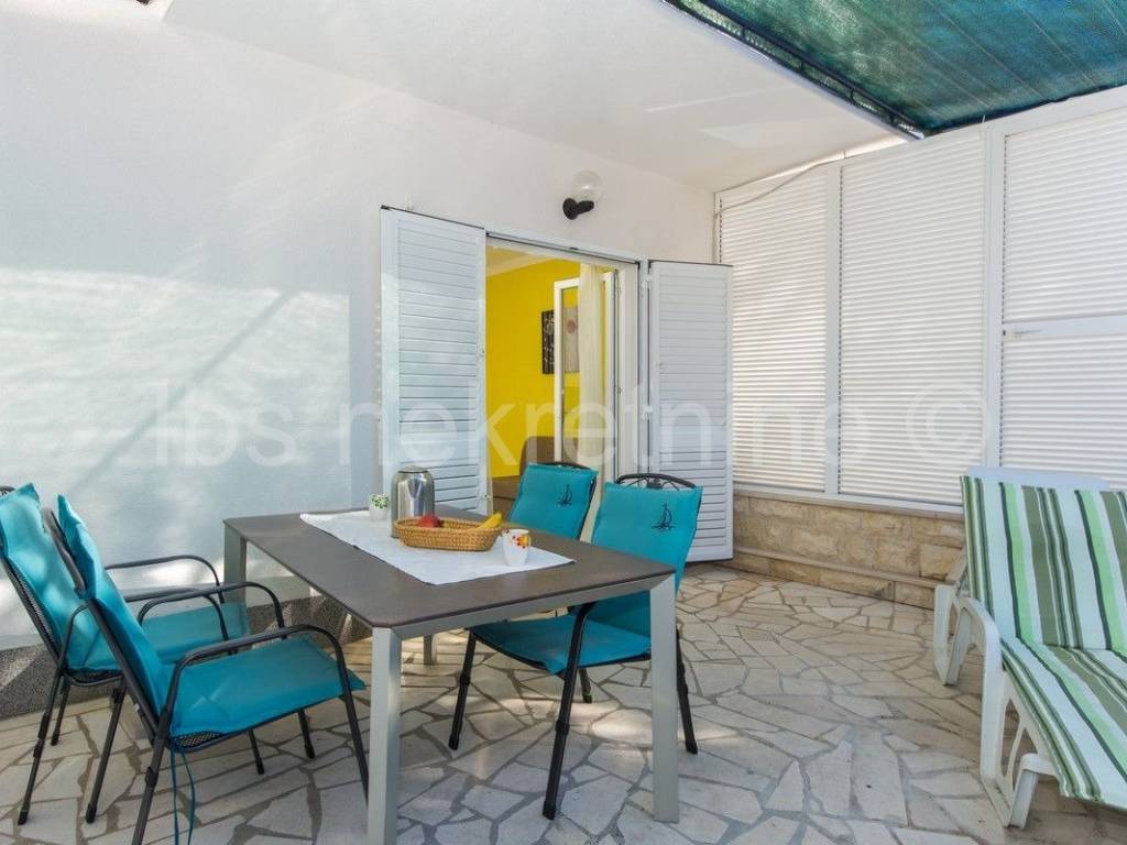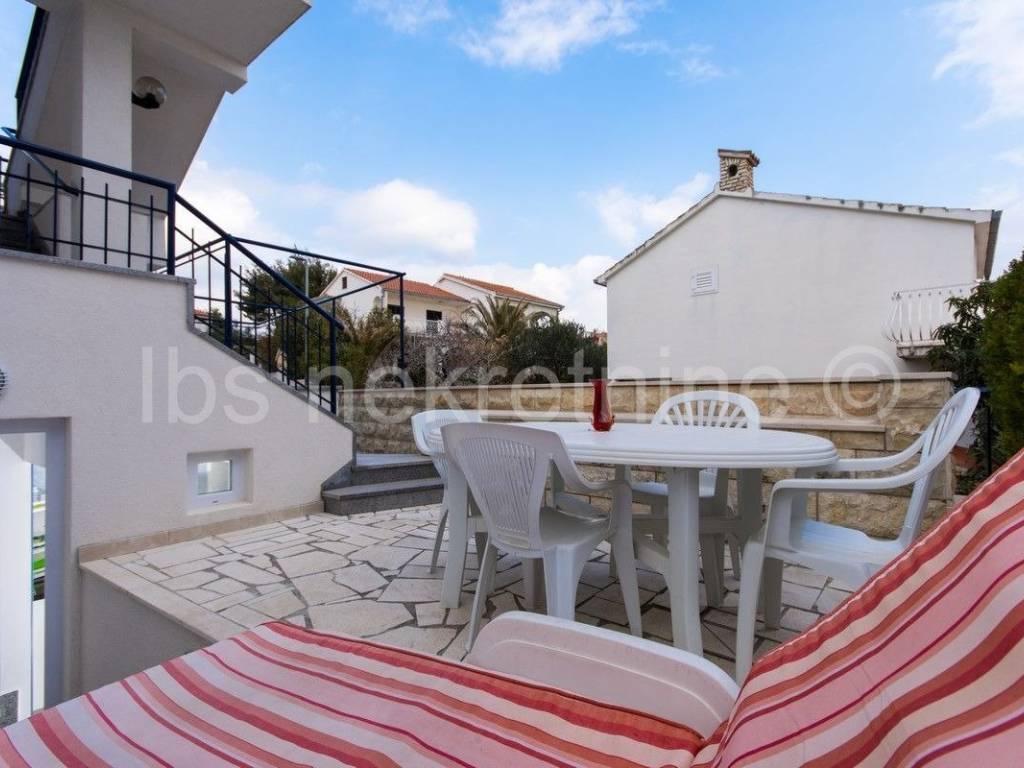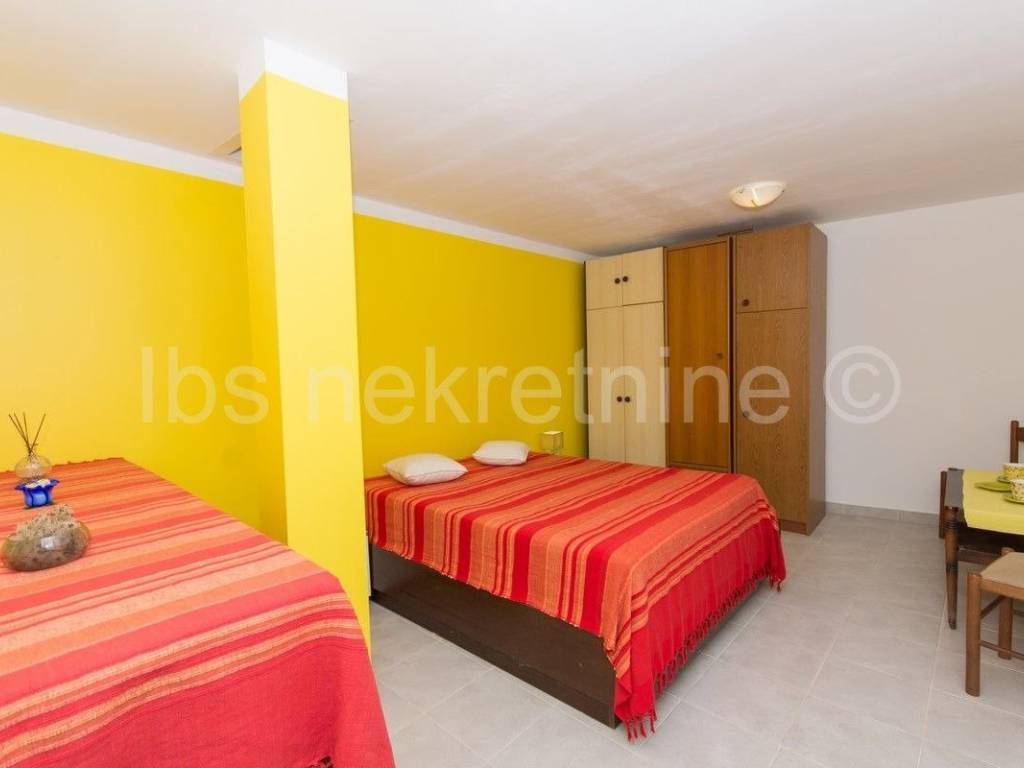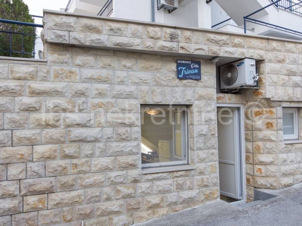 Vila ima 7 dvosobnih i suvremeno ure��enih apartmana. Svaki apartaman ima izlaz na terasu s prekrasnim pogledom na more i otoke. Ku��a je udaljena samo 100m od predivne pla��e. U dvori��tu se nalazi vanjski tu��, grill, mjesto za vanjski boravak uz bazen te izdvojeni parking od 10 parkirnih mjesta.